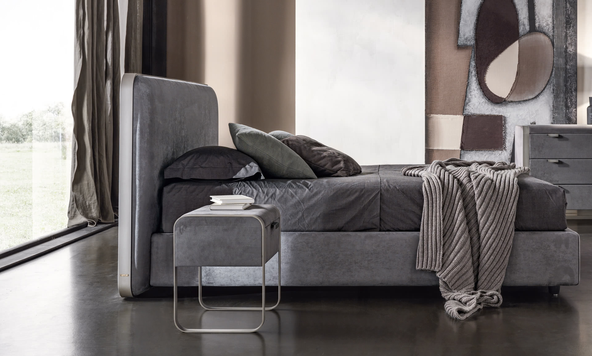 I cassetti, a richiamo frenato, e il top arrotondato sono realizzati in legno e completamente rivestiti in pelle o ecopelle. La struttura in metallo può essere finita in bronzo o in ferro patinato per rendere il comodino “vintage”. I comodini Elvis, insieme al comò, creano un gruppo notte moderno.
