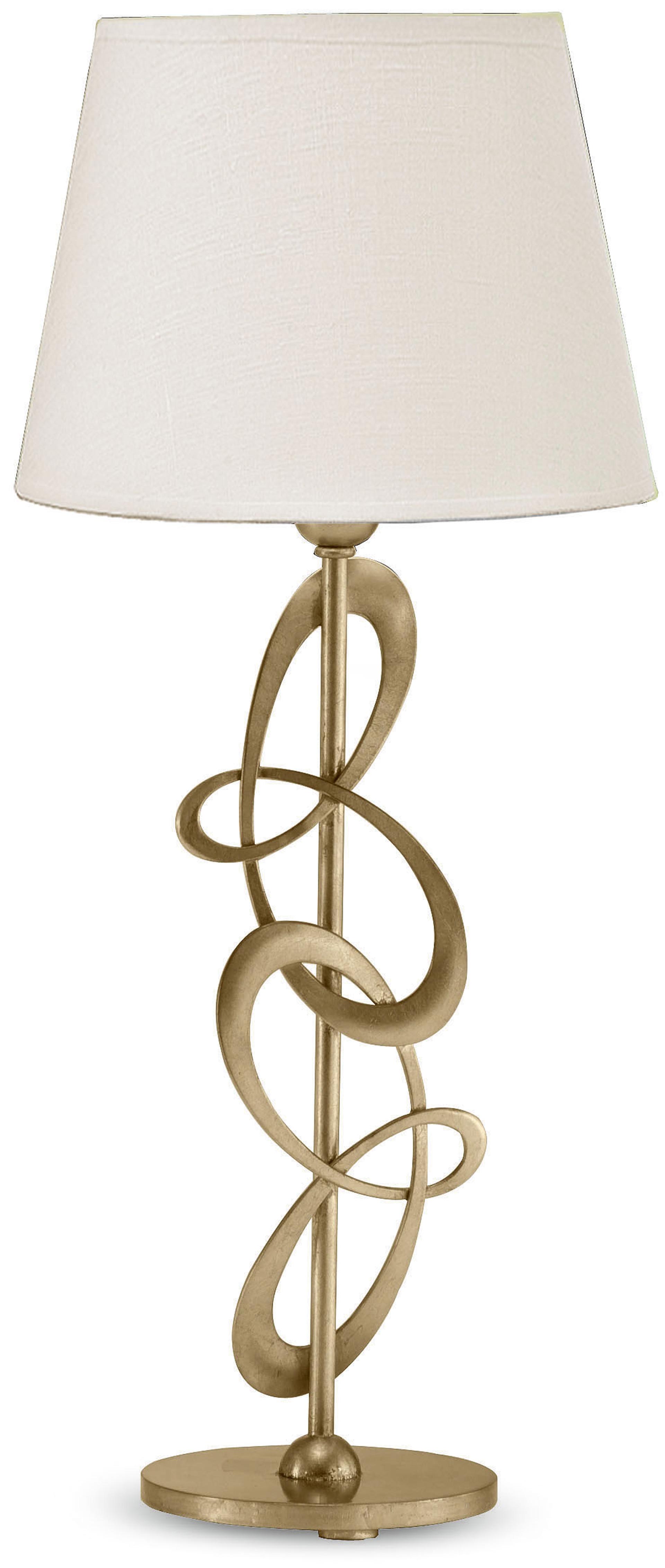 Particolari rastremati e forgiati. Otto passaggi di finitura realizzati a mano, dalla base interna alla protezione con fissativo trasparente. Paralume in lino accoppiato.