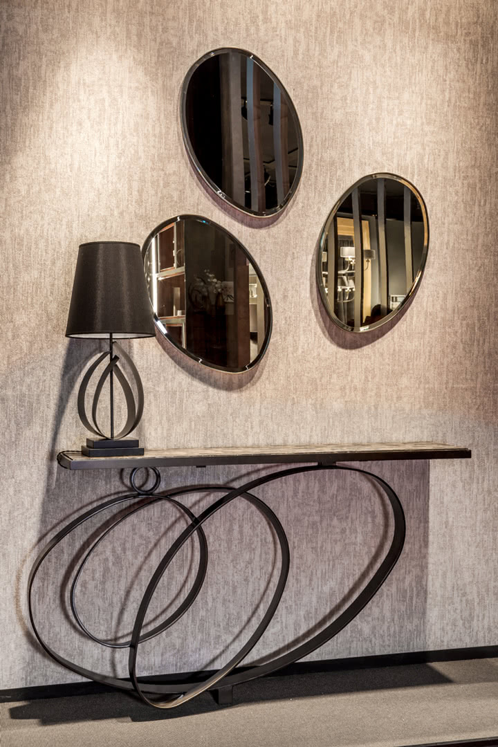 Un paralume in tessuto su una lampada, fatta da un foglio di acciaio curvato, in apparenza fluido ma solido e stabile al tatto. L’uso della finitura bronzo fa nascere luminosi e delicati riflessi che si accentuano con la luce accesa. Un design moderno che rende questa lampada/scultura adatta ad ogni ambiente e ad un gusto internazionale, classico o moderno.