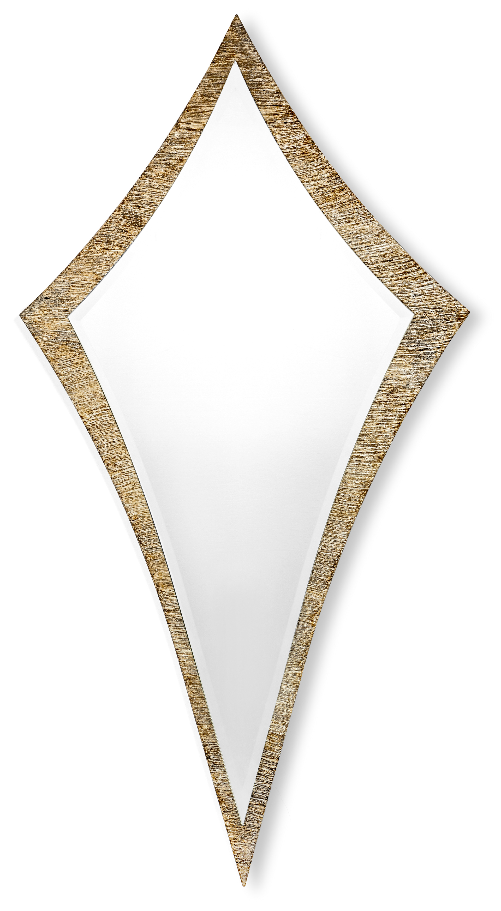 Lo specchio è in vetro molato di forma irregolare mentre la cornice è realizzata in ferro piatto tagliato a laser con decorazione artigianale in stucco e foglia argento. La forma di questa specchiera permette di creare diverse composizioni sulla parete della sala o dell'ingresso.