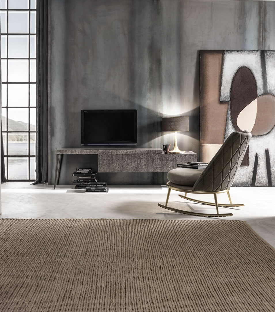La guida del piano scorrevole è registrabile in larghezza per adattarsi ad ogni esigenza. Il vano interno è accessibile grazie all'anta con apertura a ribalta con bracci di fine corsa. La struttura è in legno multistrato impiallacciato di rovere a poro aperto con spazzolatura patinata a contrasto e decorazione realizzata completamente a mano con otto passaggi di finitura. I piedi sono in metallo conificato a freddo, piastre tagliate a laser, con saldatura a ottone e levigatura realizzate a mano.