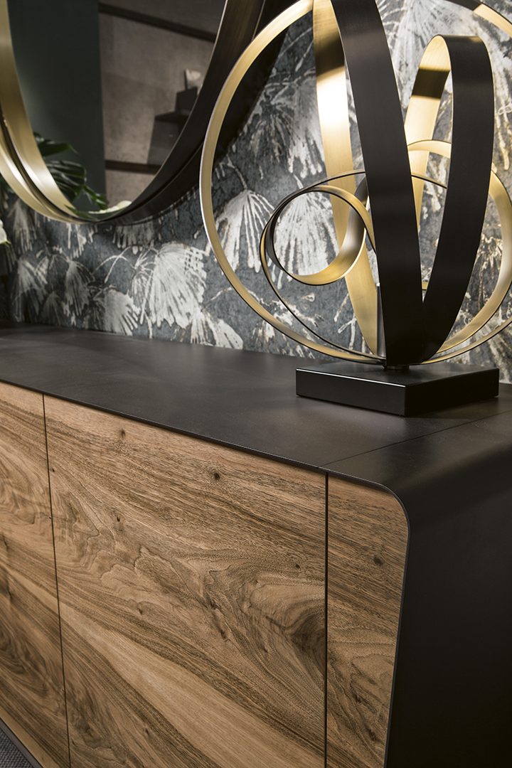 Icaro 3 or 4-door wooden sideboard with steel frame.