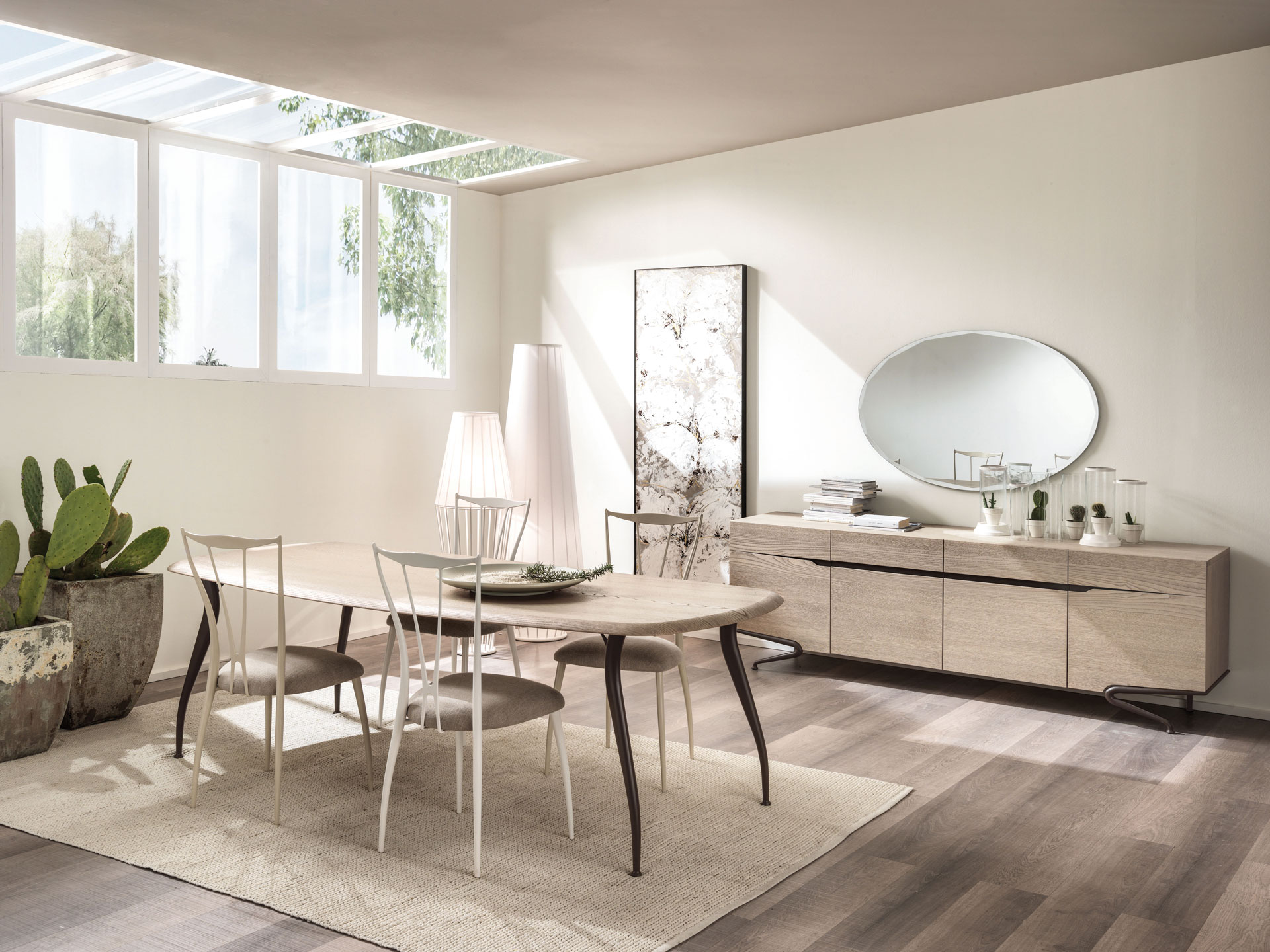 Nel dettaglio la struttura è in ferro conificato e sagomato a freddo, mentre lo schienale è tagliato a laser e curvato. La seduta in legno sagomato, è imbottito in gomma a due densità e rivestito sartorialmente in tessuto sfoderabile o in pelle/ecopelle non sfoderabile. Le sedie Vilma New si vestono d’oro per impreziosire i momenti di festa.
