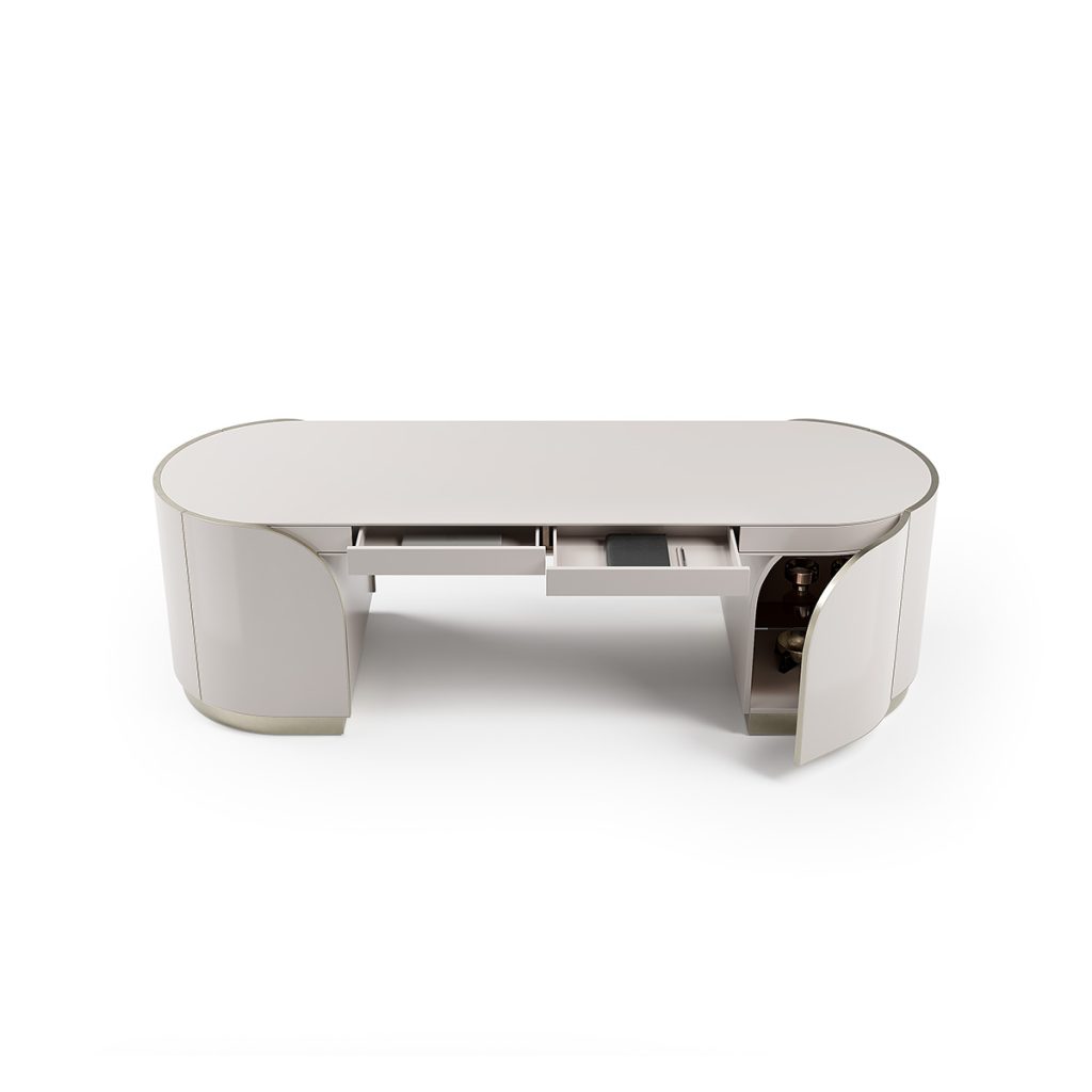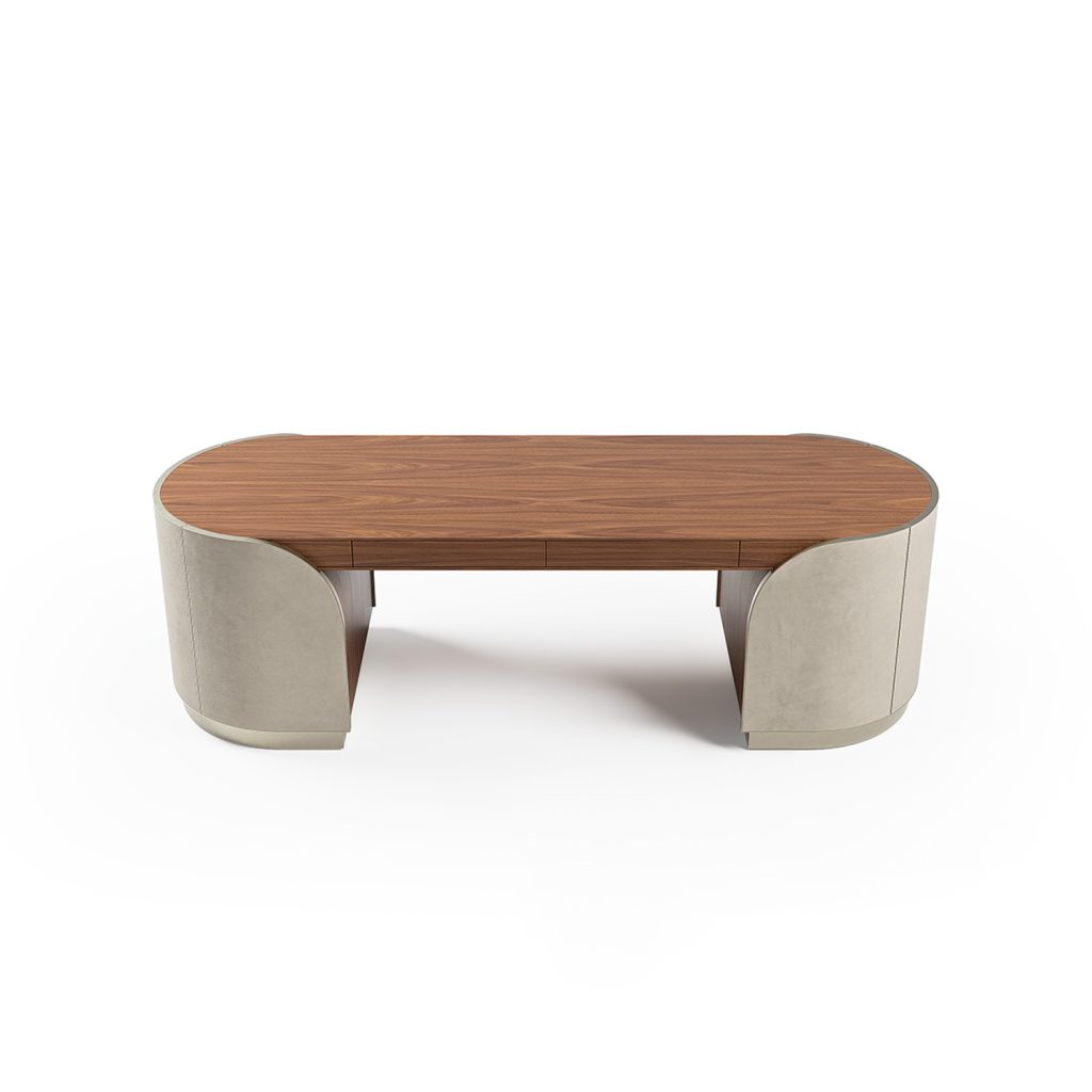 Le curve morbide della scrivania conferiscono un’aura di grazia e stile, mentre i materiali pregiati utilizzati nella sua realizzazione aggiungono una nota di lusso senza tempo. Che sia in una casa elegante o in un ambiente lavorativo di prestigio, questa scrivania si integra perfettamente, conferendo un tocco di raffinatezza ad ogni spazio.
