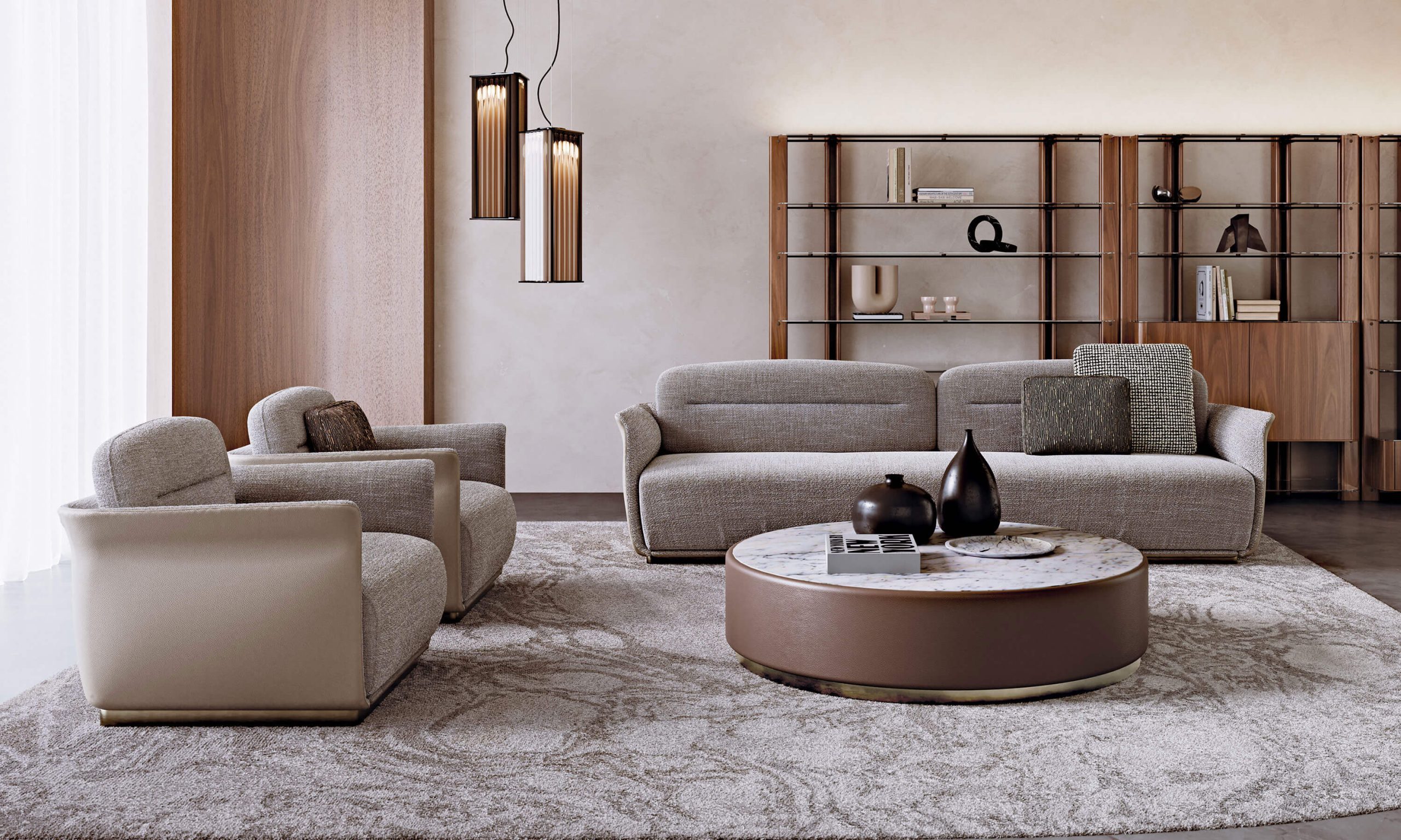 La collezione Allure, concepita in versioni completamente realizzate in tessuto, pelle o scocca in legno, incarna l’essenza di un concetto dove una sinuosa curva traccia il profilo della scocca, avvolgendola con grazia prima di delineare le imbottiture interne. Caratterizzata da una forma classica, la scocca in schiumato crea uno schienale avvolgente, simile a un guscio che accoglie e protegge con eleganza.