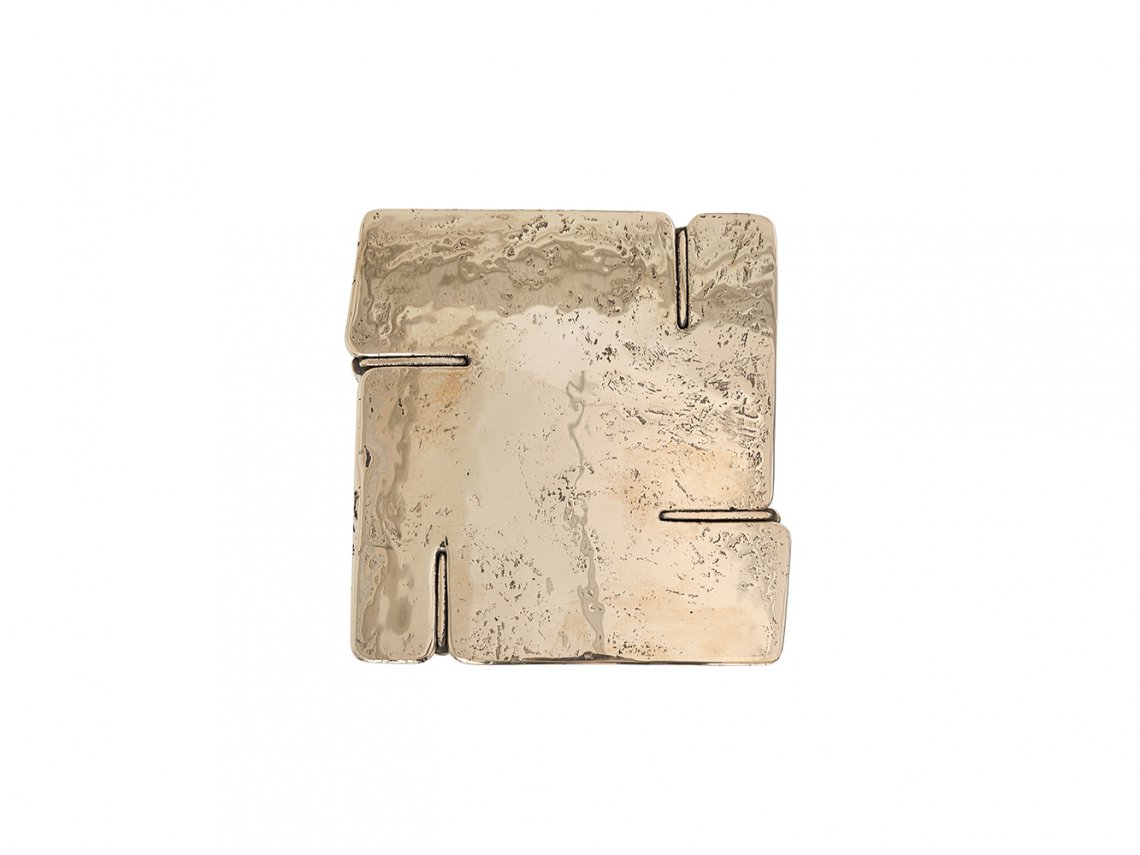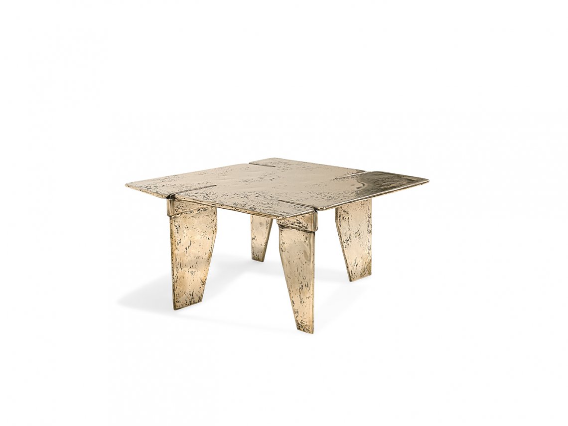 The metal version of the coffee table Overlap is realized by casting bronze into special molds made of sand. The sculptural look of the surface and the use of bronze metal as raw material makes this item a contemporary artwork.