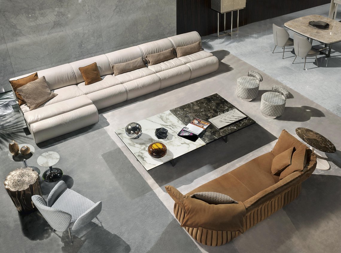 The collection of coffee tables Grant is characterized by a metal base with a tubular cross motif that gives them further elegance and refinement. The precious marble top is supported by a metal edge, which increases its thickness. The collection offers a variety of sizes and heights, to fully meet the needs of a living area with a complex design and different pieces of upholstered furniture.