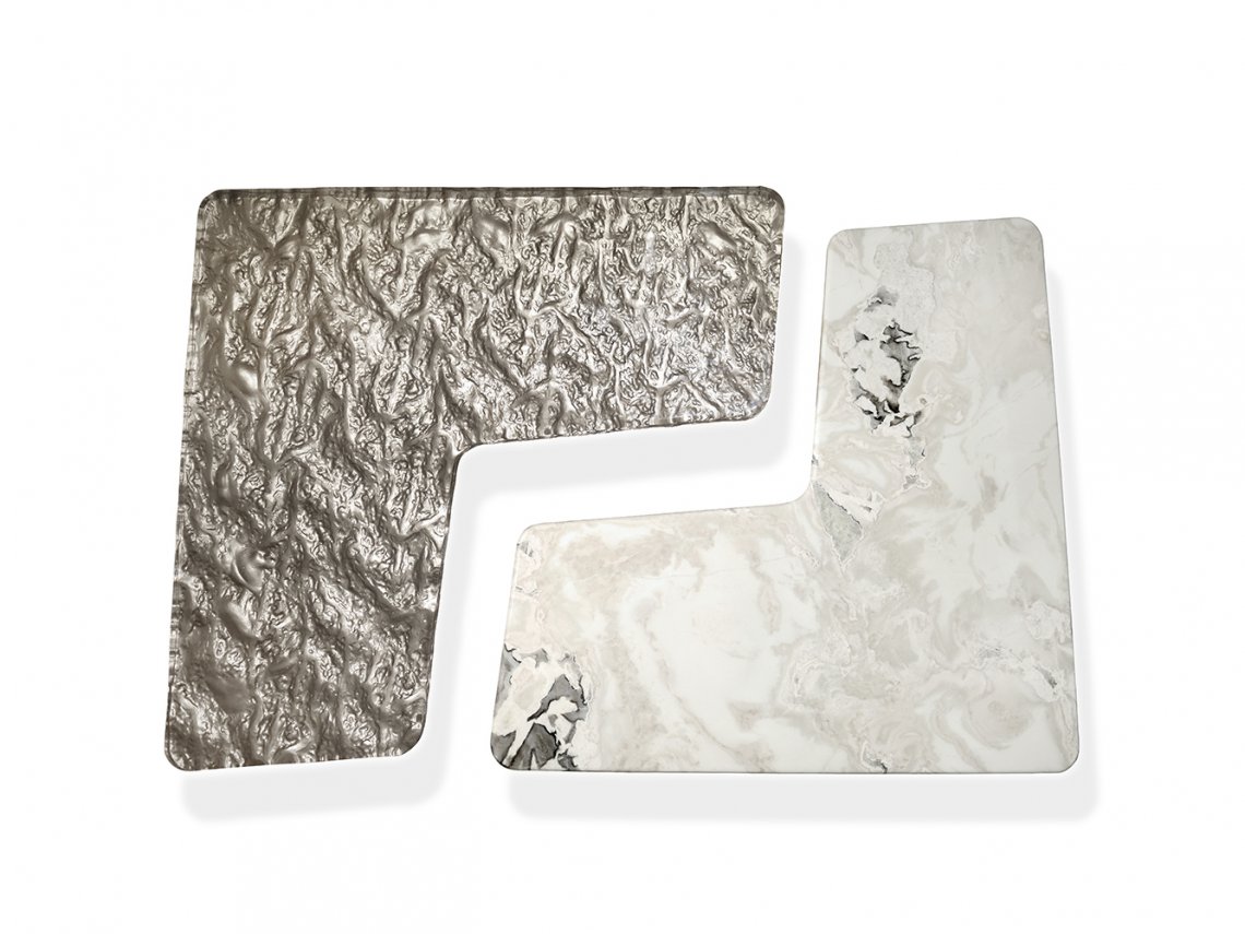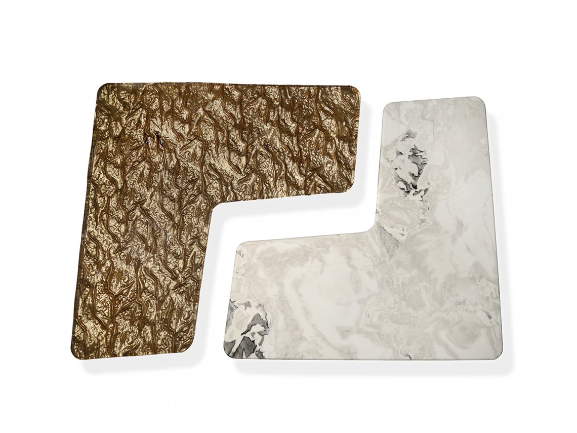 This coffee table is the marble version of the iconic Miller table with cast glass top. Its marble top is available in a wide range of natural marbles with completely rounded edge. The cylindrical base consists of several thin metal rods connected to each other.