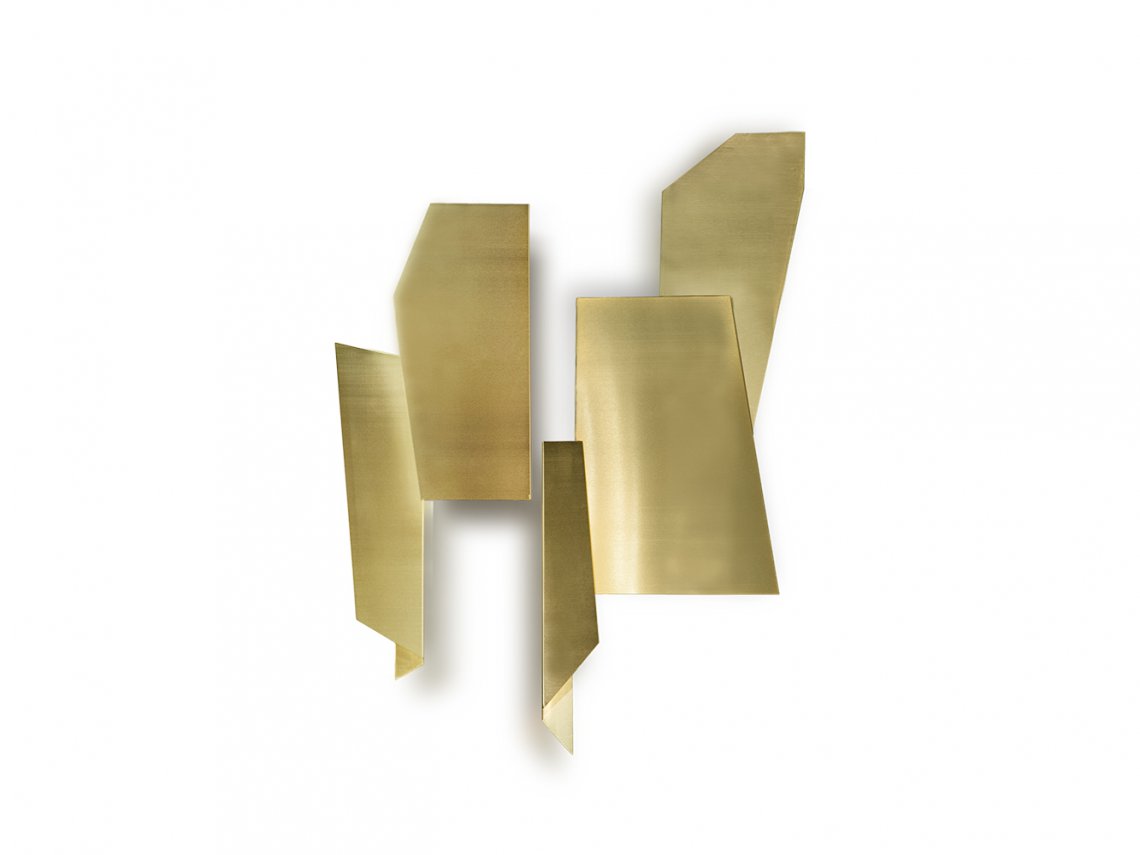 As well as being a wall-mounted lighting system, the wall lamp Geometry is a real decorative element suitable for living areas, hotel lobbies or representative offices. The combination of 5 geometric elements in brushed metal creates a new geometry that each user can customize by spacing these elements in different ways. Lights is diffused indirectly and thanks to the different shape of all the elements, it projects on the wall a play of reflections and shadows.
