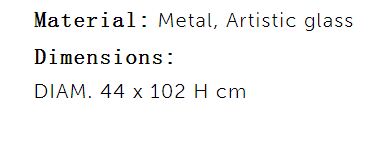 Floor lamp Cooper is composed by three metal legs that merge at the base of a glass blown element realized by master glassmakers in Venice area. The light comes out through the glass exalting its preciousness in terms of colour and shape while the metal part is realized as if they were a chain made up of little spheres.