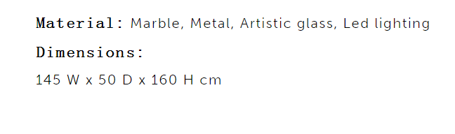 In Lewis console a bundle of metal pipes that ends up with handmade glass points crosses a precious marble top: the glass points, realized by master glassmakers in Venice area, are enlightened by leds placed inside of metal pipes. More than a piece of furniture this exclusive element is able to enhance a great atmosphere in a refined and elegant environment.