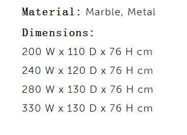 The table Grant is characterized by a remarkable marble top supported around the perimeter by a metal edge, which increases its thickness. A metal base with a tubular cross motif gives further elegance and refinement to this table, available in different dimensions, with a rectangular top with rounded corners.