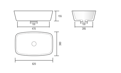 Top washbasins in Monolith, with no overflow, for Monolith drain plug.