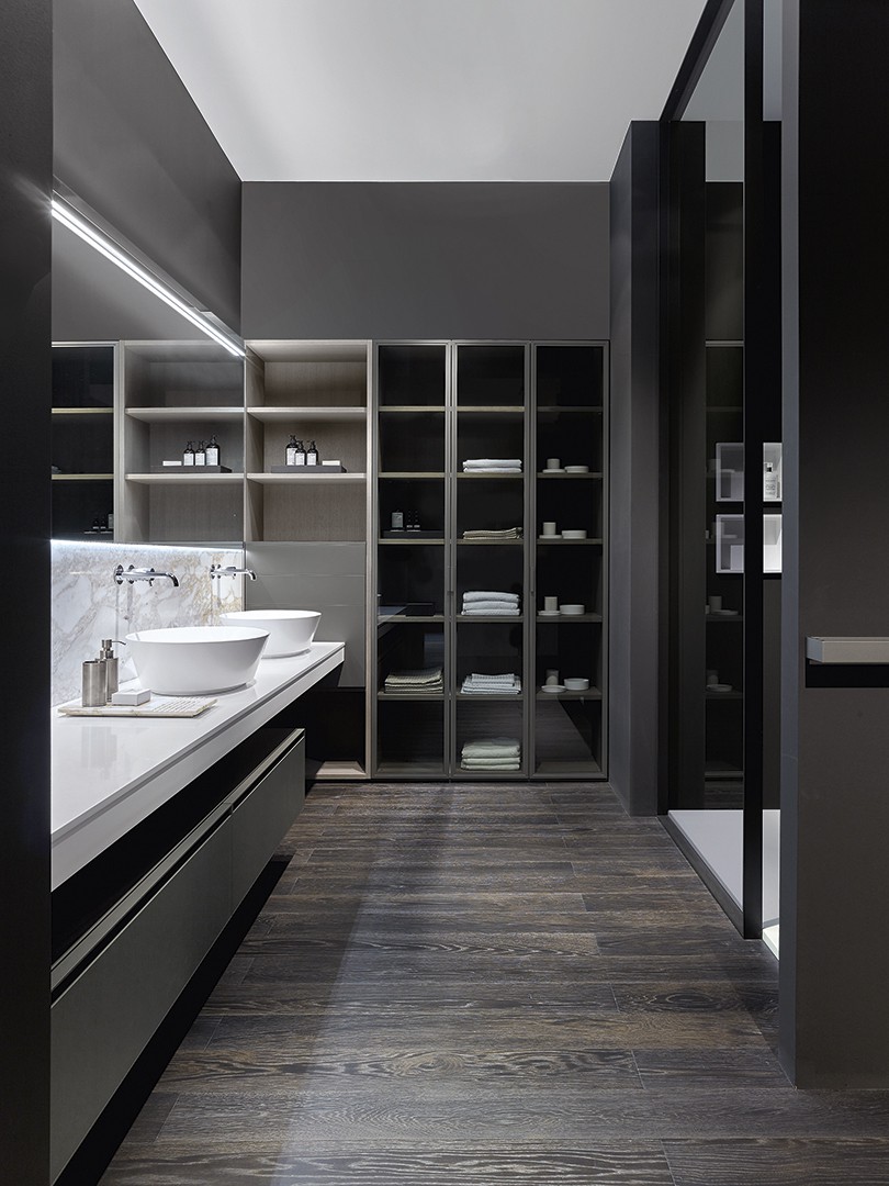 Top washbasins in Monolith, with no overflow, for Monolith drain plug.
