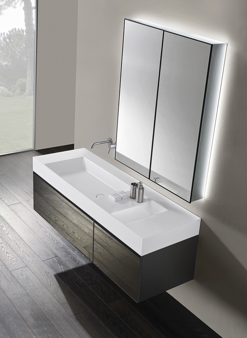 Top washbasins in Monolith, with no overflow, for Monolith drain plug.