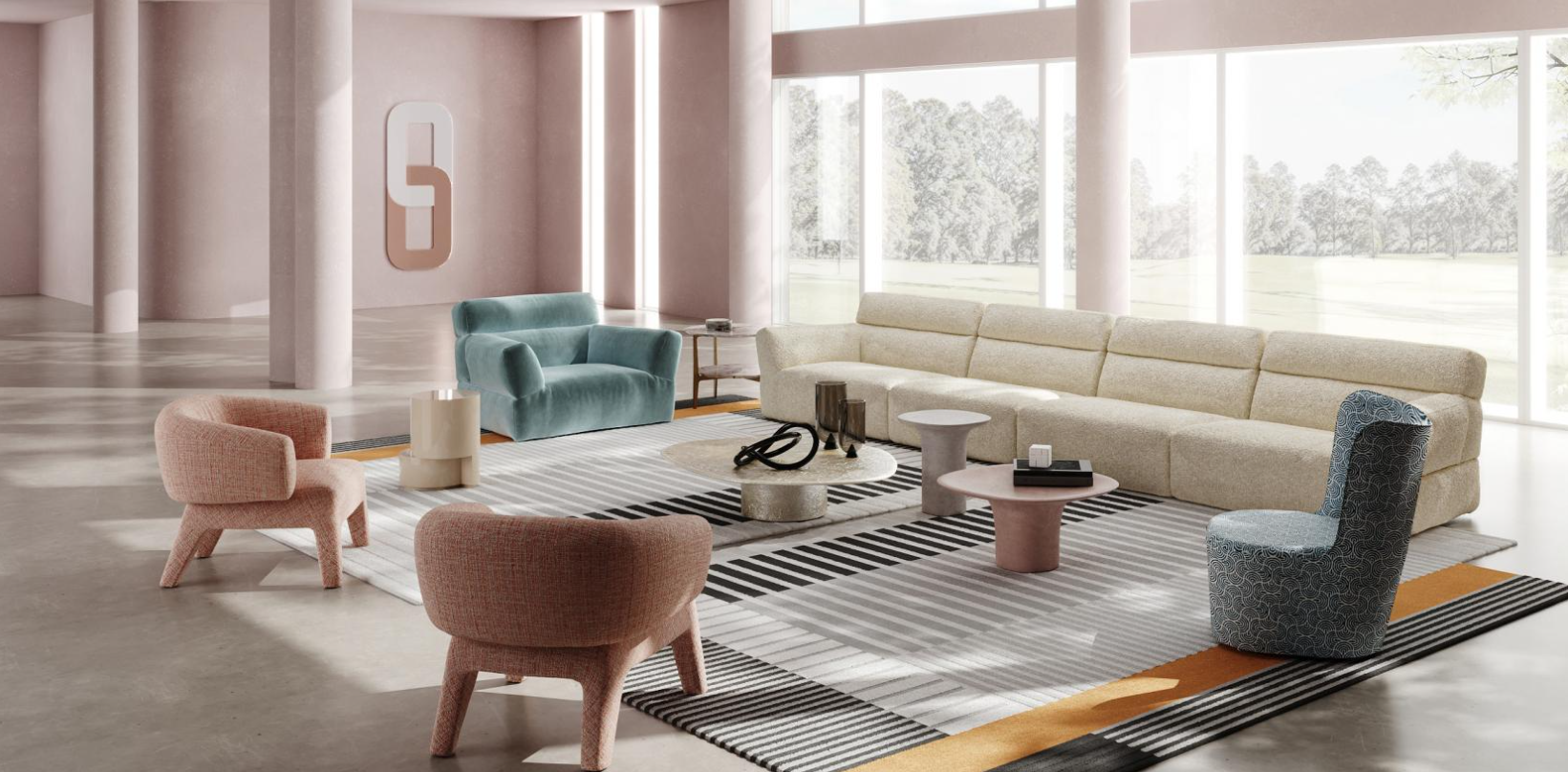 The modular sofa that invites you to relax, thanks to its soft and generous shapes, offering a total comfort.