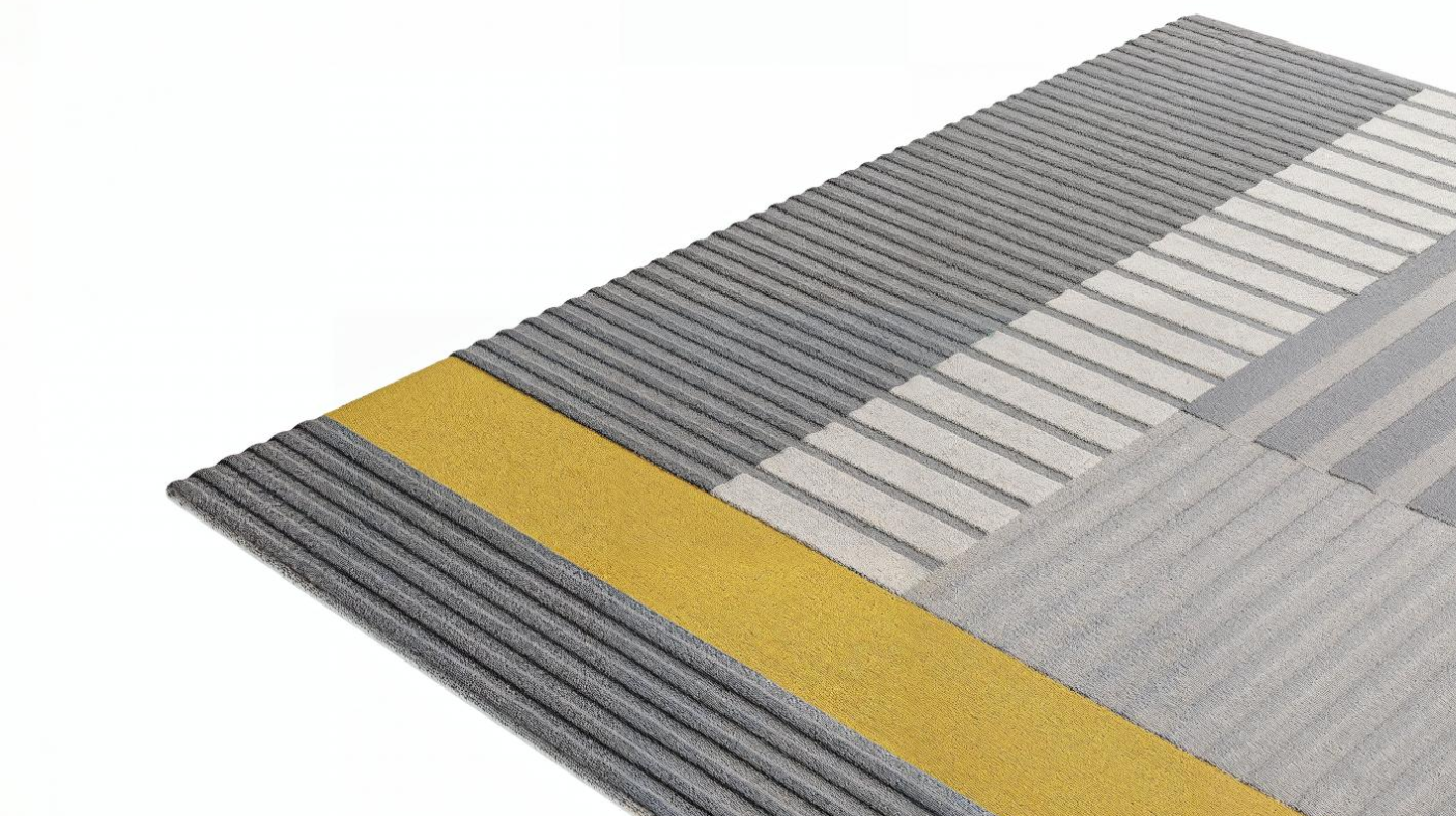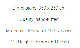 An asymmetrical rug, handcrafted using manual Tufting method, made of wool and viscose.