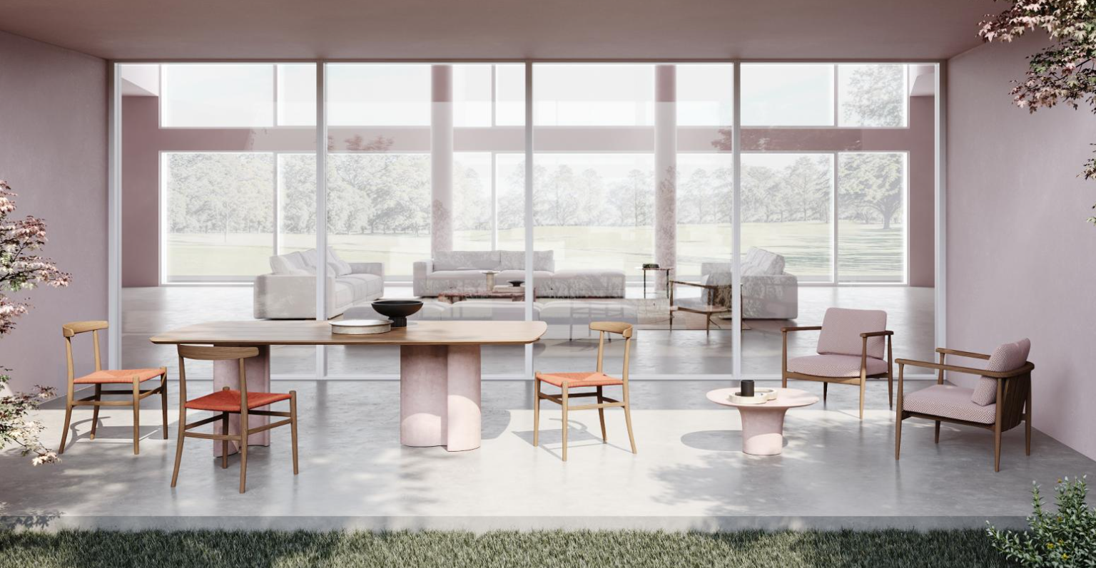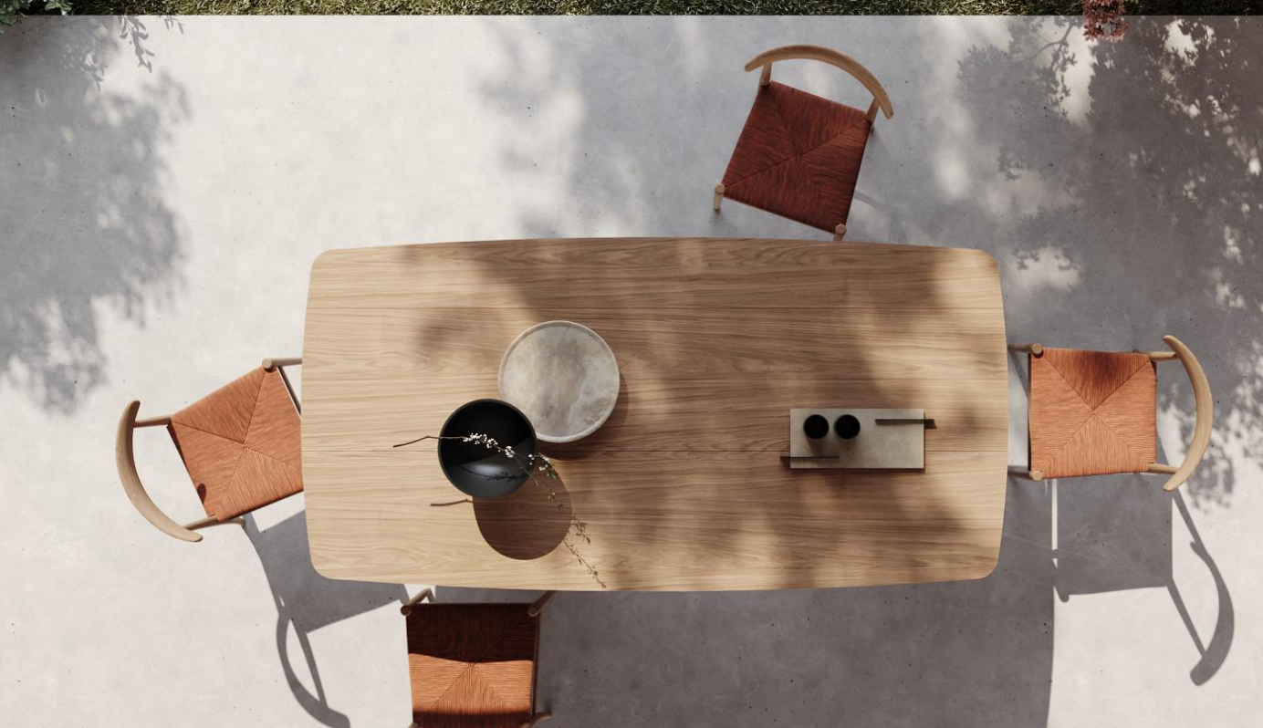 Table with concrete base crafted using artisanal and materic techniques, featuring nuanced, faded, and delicate shades.