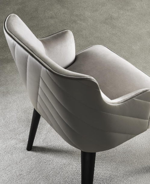 Upholstered chair with a contemporary design, characterized by the enveloping backrest in the quilted version that gives it modernity, like the thinner and oval "slim" legs.