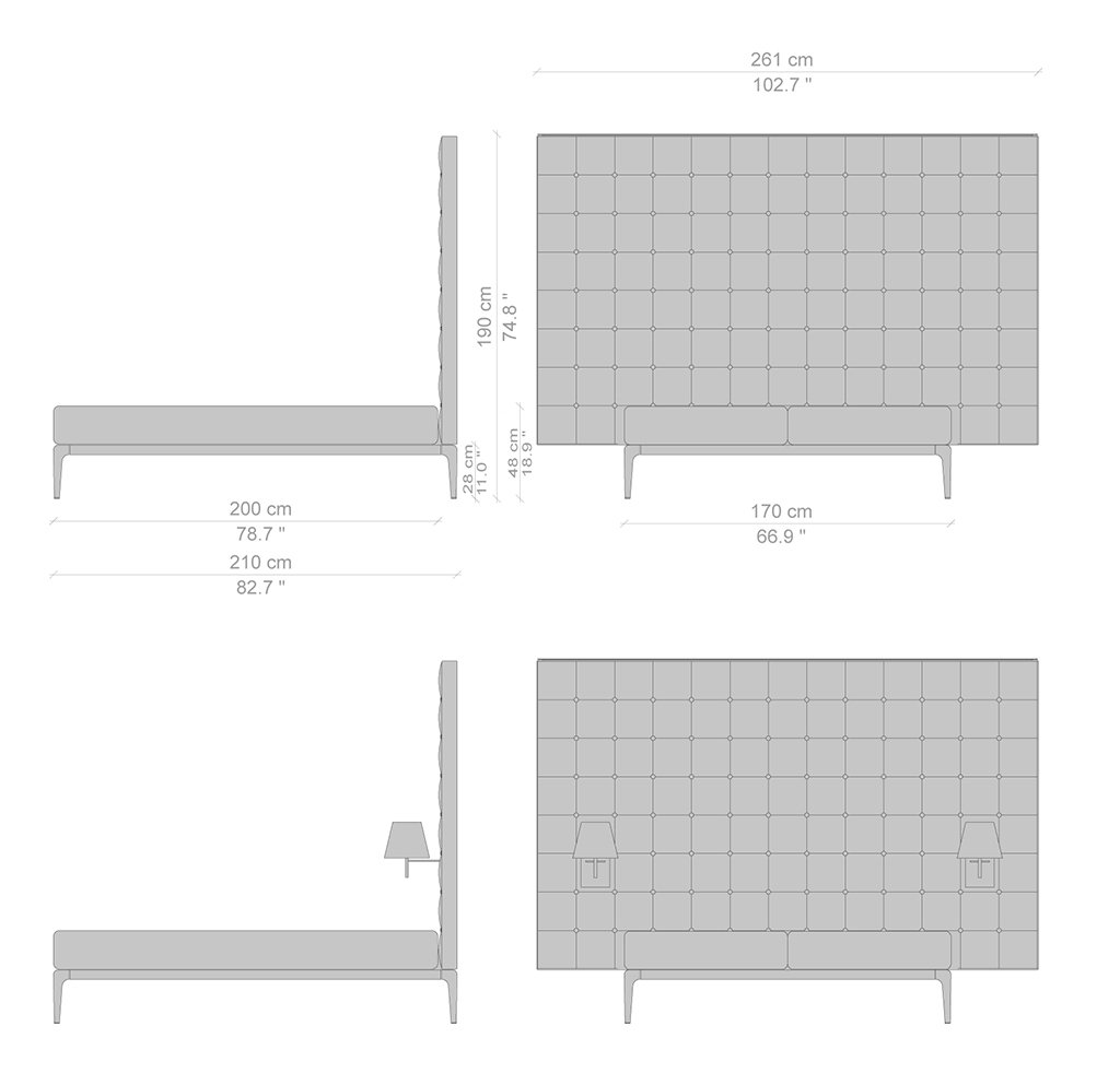 Il letto Volage associa ironia e leggerezza a un disegno deciso, per un risultato dal de-sign originale e rigoroso. Il giroletto è in alluminio, rivestito in tessuto o pelle; la testiera – imbottita in poliuretano espanso, privo di CFC – è caratterizzata da una preziosa lavora-zione capitonné in pelle o tessuto, sviluppata e brevettata dall’azienda a livello interna-zionale, e abbinata a piedi sottili in pressofusione di alluminio lucido. La libertà di visione e interpretazione è agevolata dall’ampiezza dell’abaco e dalla testiera in varie dimen-sioni: a filo del bordo letto, può essere bassa (della stessa dimensione del letto o più grande, anche con la predisposizione per lampade da lettura) o alta (in dimensioni am-pie, anche con predisposizione per lampade da lettura). Completano la collezione un comodino e una panca.