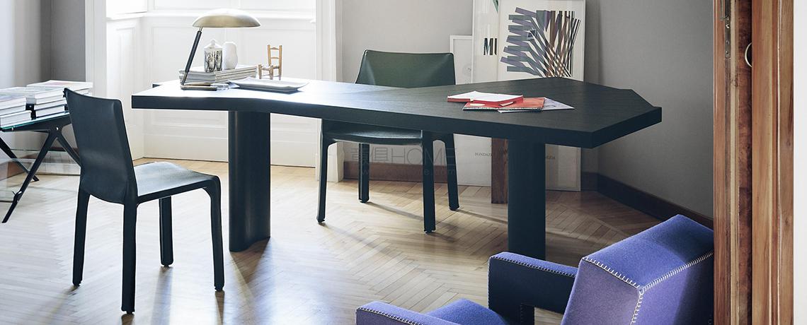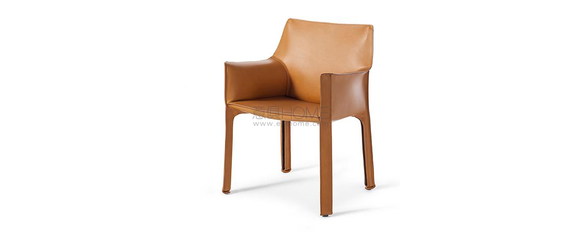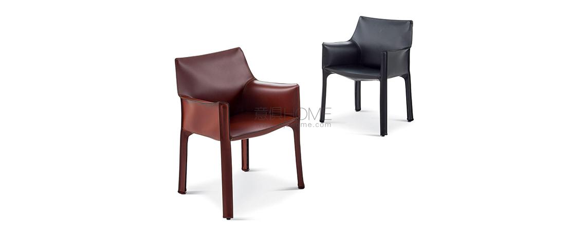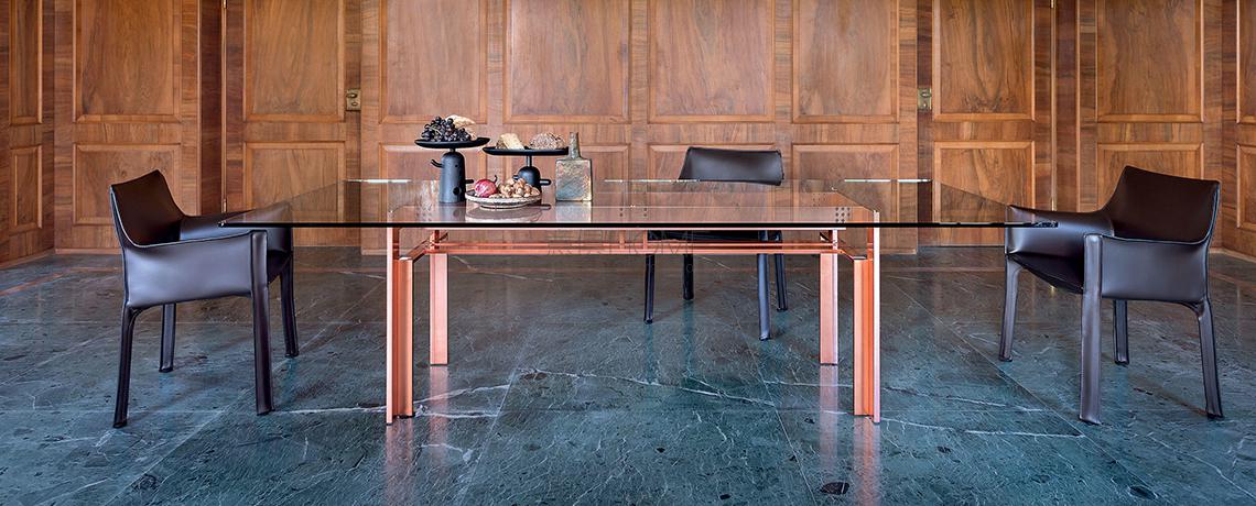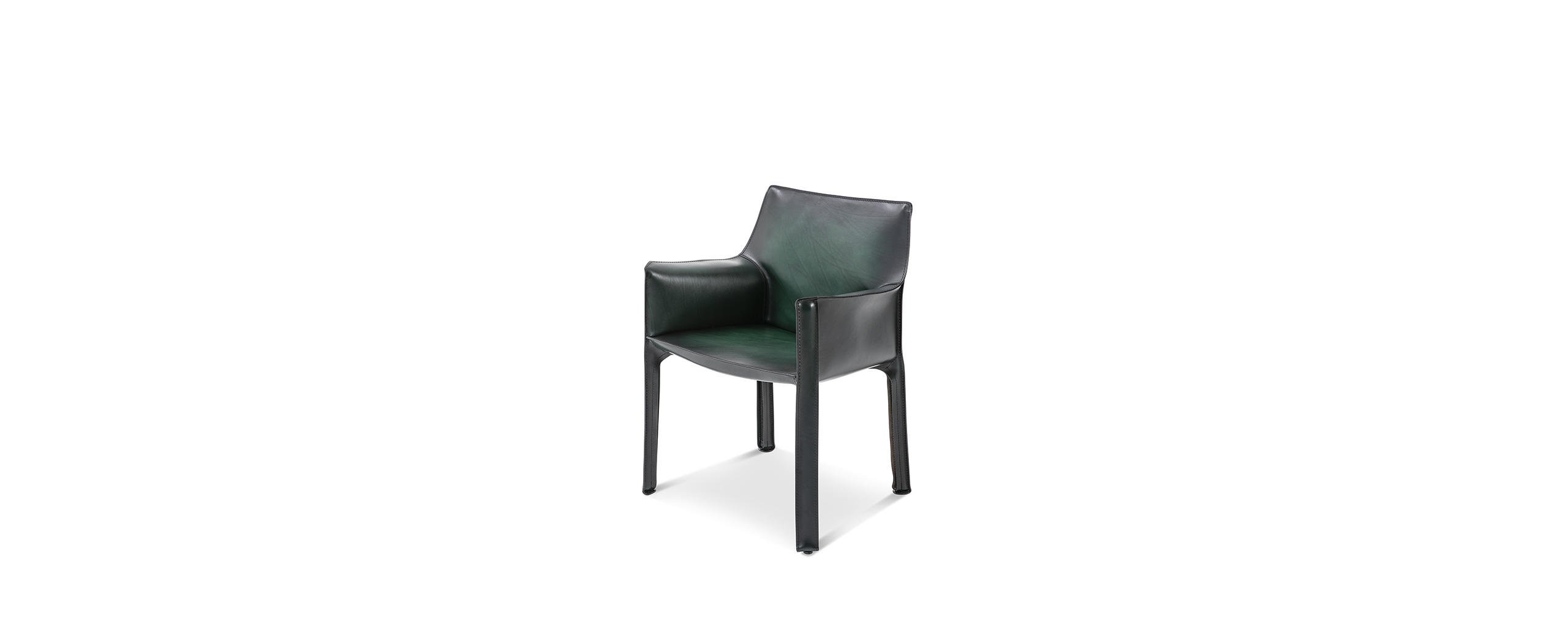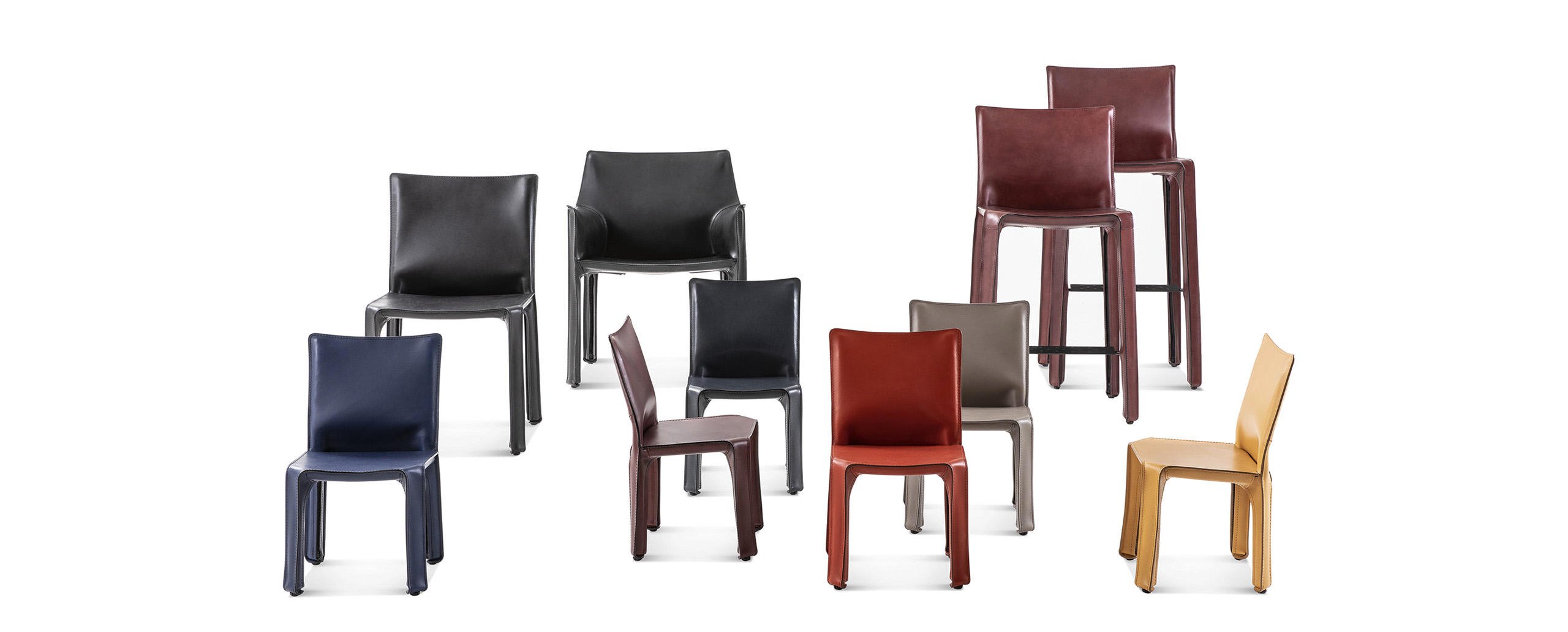 “Un nuovo genere di sedia, tutta in cuoio, oggi molto clonata”. Così Mario Bellini descrive la sedia-poltroncina Cab, best-seller ideato nell’epoca d’oro del design italiano e oggi pezzo iconico della collezione I Contemporanei. Cab è la prima sedia al mondo caratterizzata da un struttura in cuoio autoportante ispirata al rapporto tra scheletro e pelle. Il suo rivestimento è formato da 16 parti in cuoio, fustellate una ad una e successivamente sottoposte a 14 lavorazioni manuali. Le singole parti tagliate vengono infatti cucite insieme solo dopo aver subito un procedimento di scarnitura volto ad assottigliare lo spessore delle porzioni da accoppiare. Il rivestimento viene poi calzato su uno scheletro d'acciaio e chiuso con cerniere lampo come un abito sartoriale. Oltre all’ampia varietà di colori per la seduta in cuoio, la proposta include la variante in cuoio pigmentato nelle tonalità del nero, marrone e rosso bulgaro.