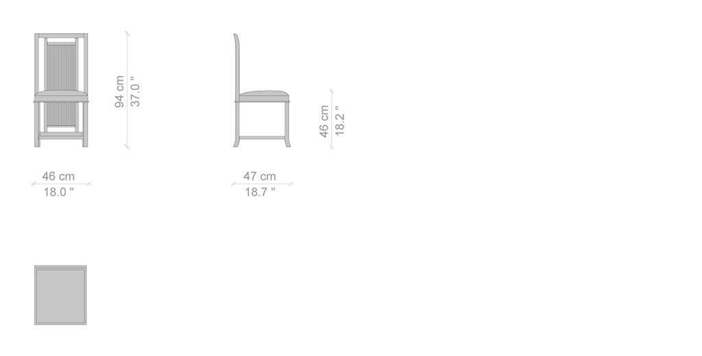 Una sedia estremamente funzionale, progettata nel 1907 per la Avery Coonley House, tra i massimi esempi dello stile praire house. Wright utilizza suoi tipici montanti verticali per una costruzione caratterizzata dalla sapiente combinazione tra forme e materiali, capace di confondersi con l’ambiente circostante in un’armonia perfetta. Come in ogni progettazione del maestro, il rapporto con la natura occupa un ruolo centrale. Il modello con schienale alto è per questo concepito come un arredo estremamente funzionale, in grado di donare eleganza e comodità a chi lo usa raggiungendo al tempo stesso una simmetria essenziale fatta di linee semplici e pulite.