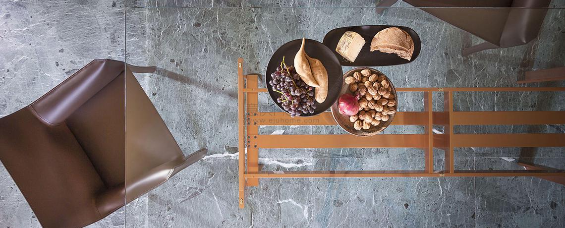 L’attuale proposta include cinque dimensioni ispirate al primo modello realizzato da Scarpa, disponibili sia con piano in vetro float che nelle varianti in marmo bianco di Carrara o in marmo nero di Marqui?a.