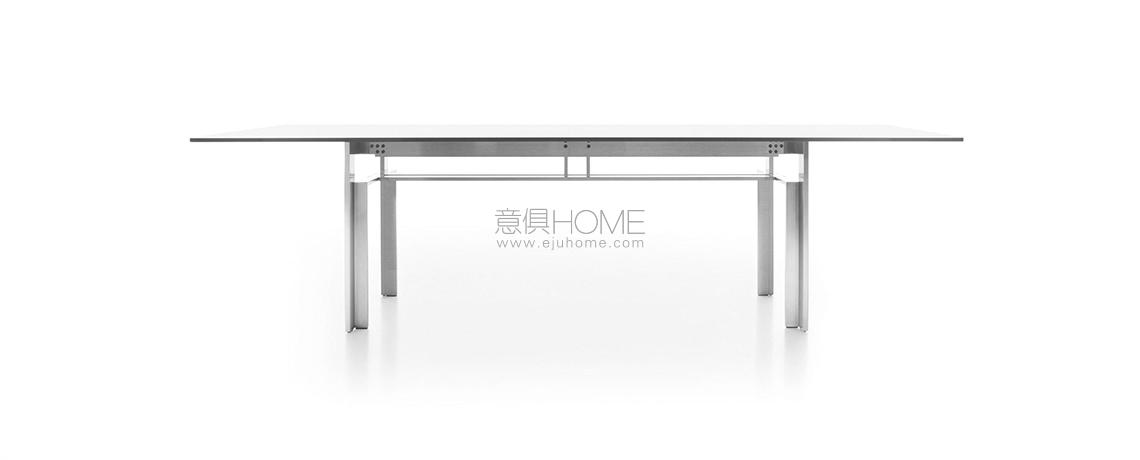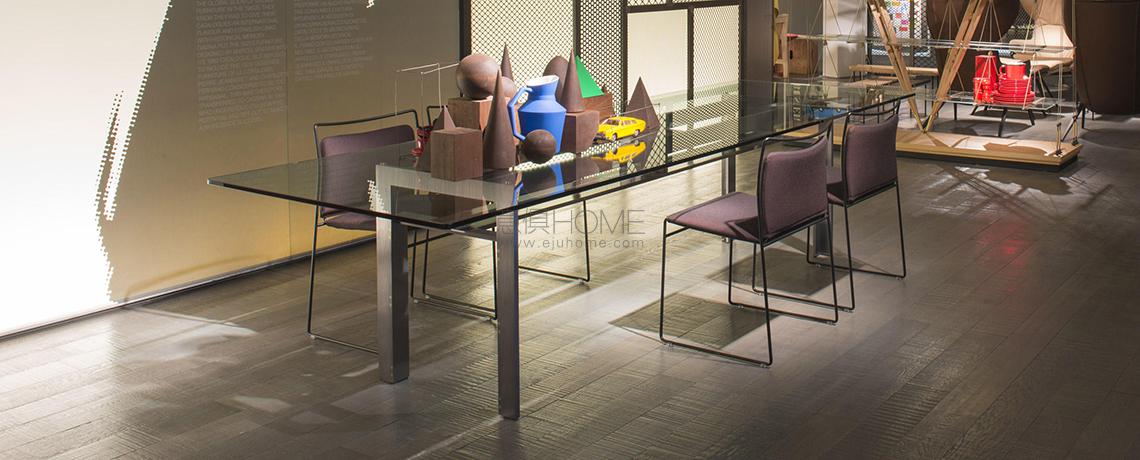 Un caposaldo del design italiano, una struttura scultorea divenuta emblema del movimento “Ultrarazionale” che verso la fine degli anni ’60 suggerì il superamento dei limiti imposti dal razionalismo e il recupero dei valori estetici tradizionali. Parte della SimonCollezione di Cassina, il tavolo Doge è stato aggiornato nel tempo attraverso l’introduzione di nuovi trattamenti e materiali sviluppati nell’ambito del programma C90 Mutazioni. La base architettonica in alluminio o in acciaio satinato, definita da profili piatti a forte spessore, costituisce la parte essenziale del tavolo, mentre l’anima elegante e raffinata del dettaglio degli elementi di appoggio acquista visibilità centrale attraverso la trasparenza del vetro.