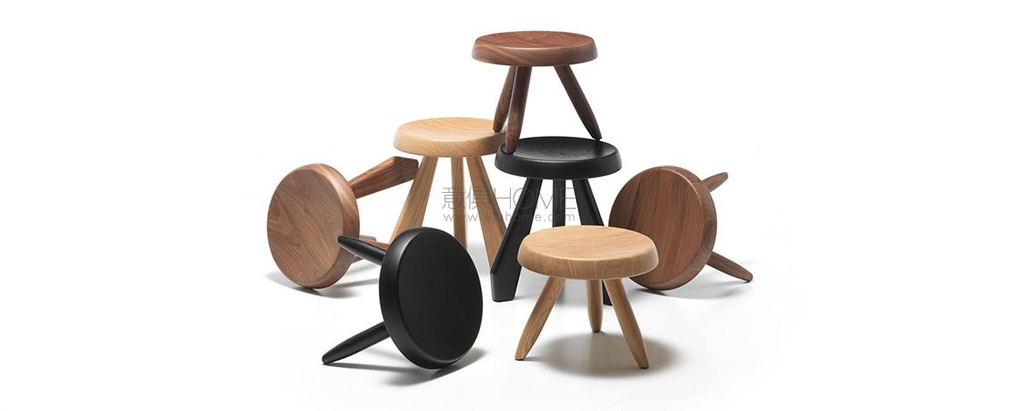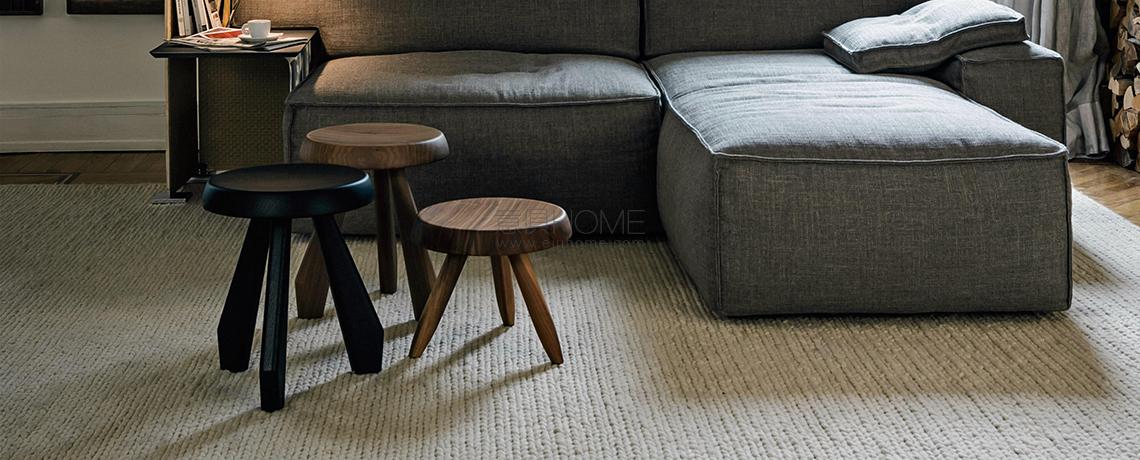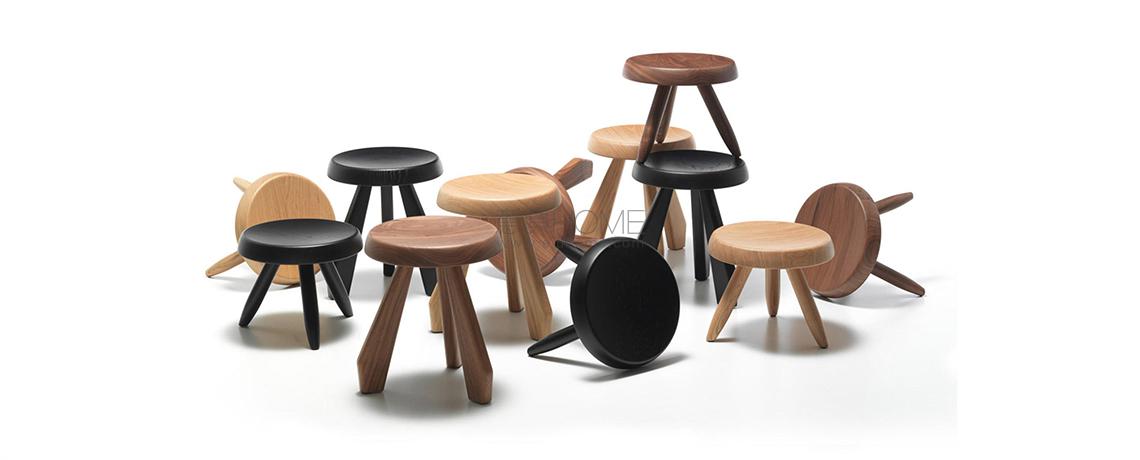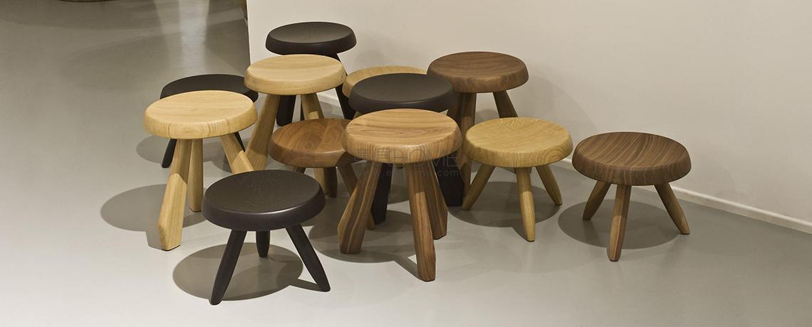 Entrambi ispirati dalla montagna, l’uno prende il nome dai pastori delle Alpi che utilizzavano questa tipologia di sgabello per mungere, l’altro dalla località francese amata dalla Perriand. Questi complementi si distinguono per l’onestà delle forme semplici e per la concretezza espressa dal materiale e dalla funzione. Il sedile tornito è abbinato alle gambe stilizzate sia per il Tabouret Berger, variante bassa con tre gambe in massello tornite a mano, sia per la versione alta Tabouret Méribel con tre gambe angolari a taglio. Prodotti da Cassina grazie a un’accurata lavorazione artigianale che onora l’autenticità del progetto, questi piccoli capolavori possono essere utilizzati singolarmente o in composizioni di grande originalità. L’utilizzo del massello comunica una piacevole sensazione di morbidezza, con la continuità della venatura tra il piano e il bordo, mentre la profondità delle superfici disegna su ogni pezzo infinite variazioni naturali.