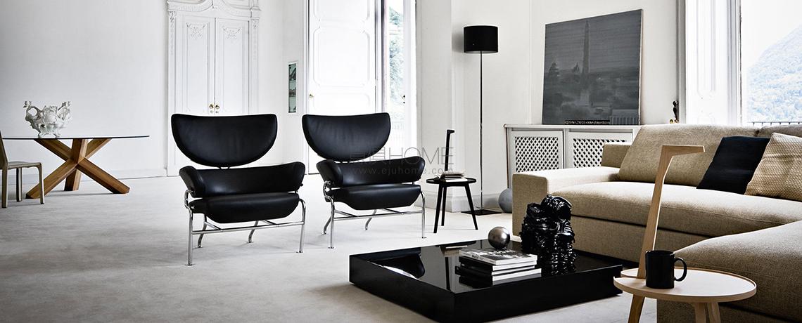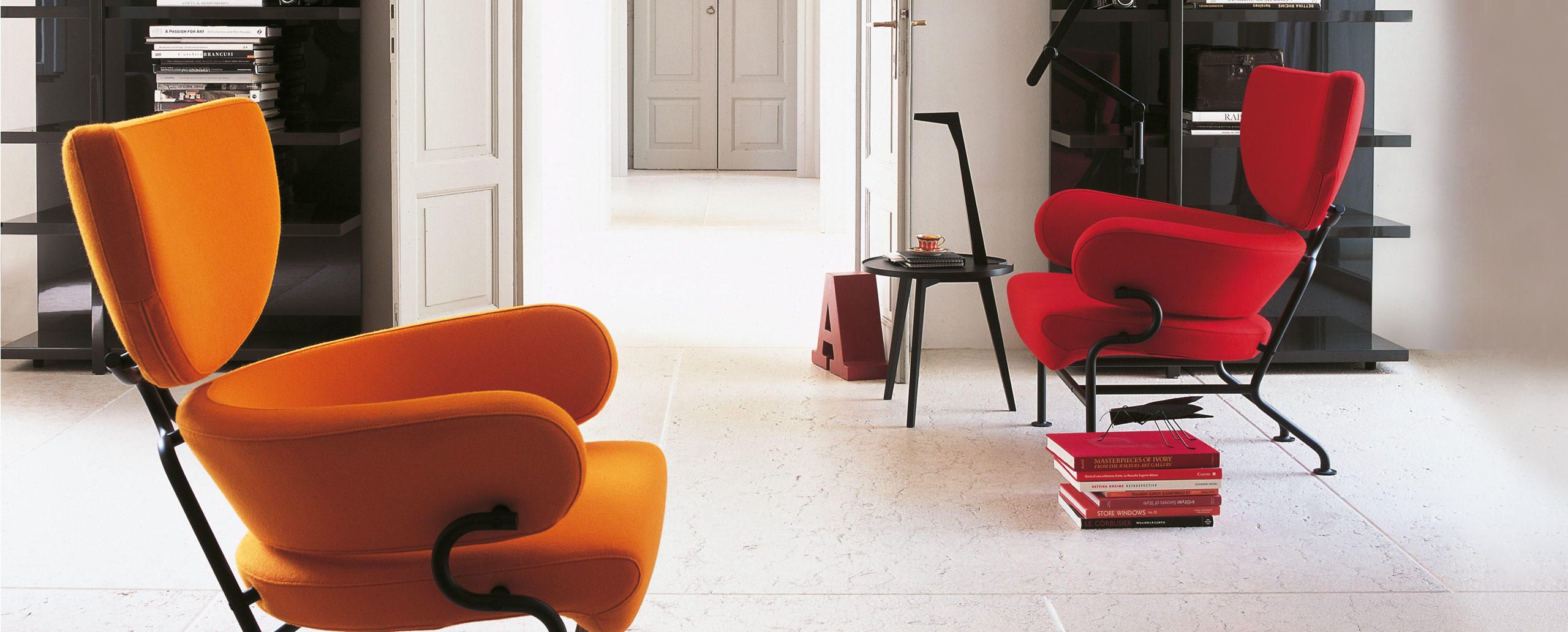 Franco Albini disegna Tre Pezzi nel 1952, insieme a Franca Helg, assidua collaboratrice che lo affianca in questa rilettura moderna della classica bergère. La struttura combina la seduta profonda, l’anello poggiareni e il poggiatesta a mezzaluna distinguendo tuttavia l’identità e la geometria nitida di ogni elemento. Le forme imbottite, ampie e avvolgenti, coniugano l’essenzialità stilistica alla sensazione di comfort estremo. Il telaio in tubolare di metallo si ispira ai tubi dei ponteggi e ricorda, nella curvatura laterale del bracciolo, i corrimani per la Metropolitana di Milano progettati dagli stessi autori. Il risultato è una poltrona di grande attualità e presenza scenica, rieditata da Cassina nel più autentico rispetto del progetto originale.