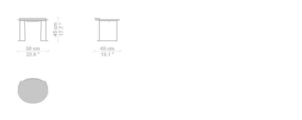 Il piccolo tavolo Djuna, disegnato dall’architetto giapponese nel 1983, è dedicato alla scrittura gentile di Djuna Barnes, autrice statunitense tra le protagoniste della scena bohèmienne parigina tra gli anni ’20 e ‘40. Lo stile elegante e delicato del tavolino è caratterizzato da una struttura in tondino d’acciaio piegato e cromato. Il piano dalla forma ellittica è disponibile in diverse finiture che includono il verniciato poliestere con effetto lucido specchiante o opaco, il marmo bianco di Carrara e il marmo nero Marqui?a lucido o opaco.
