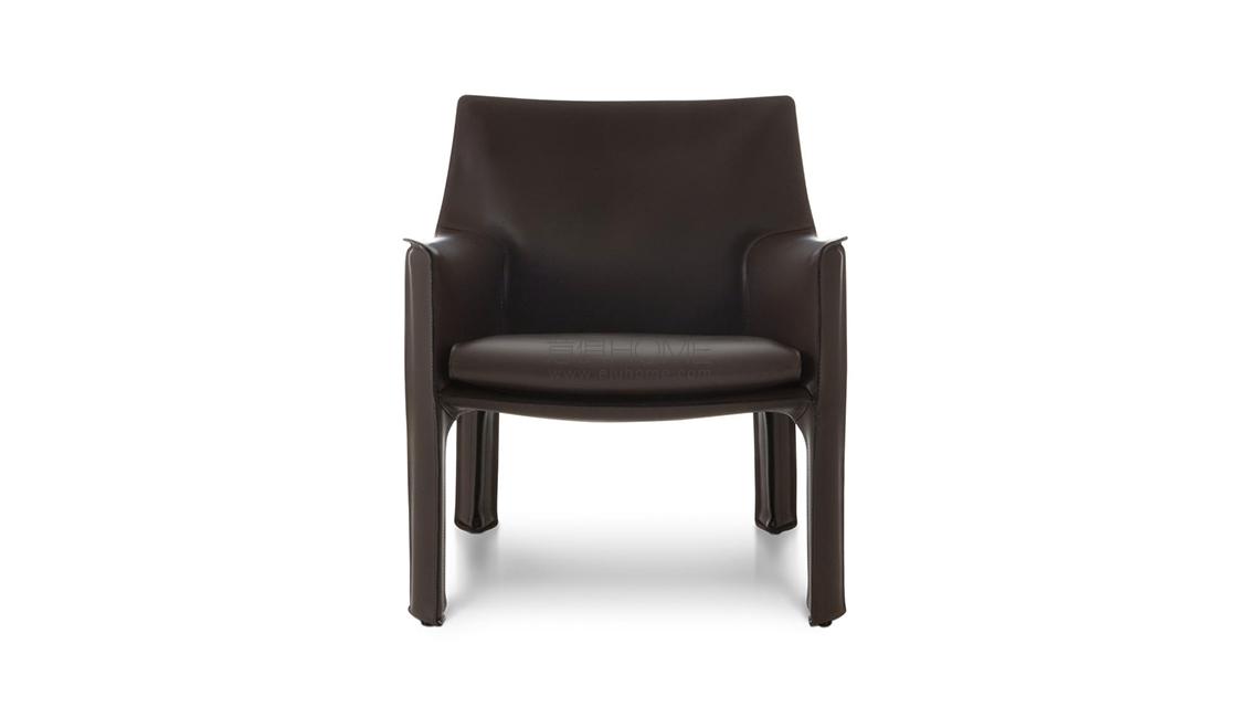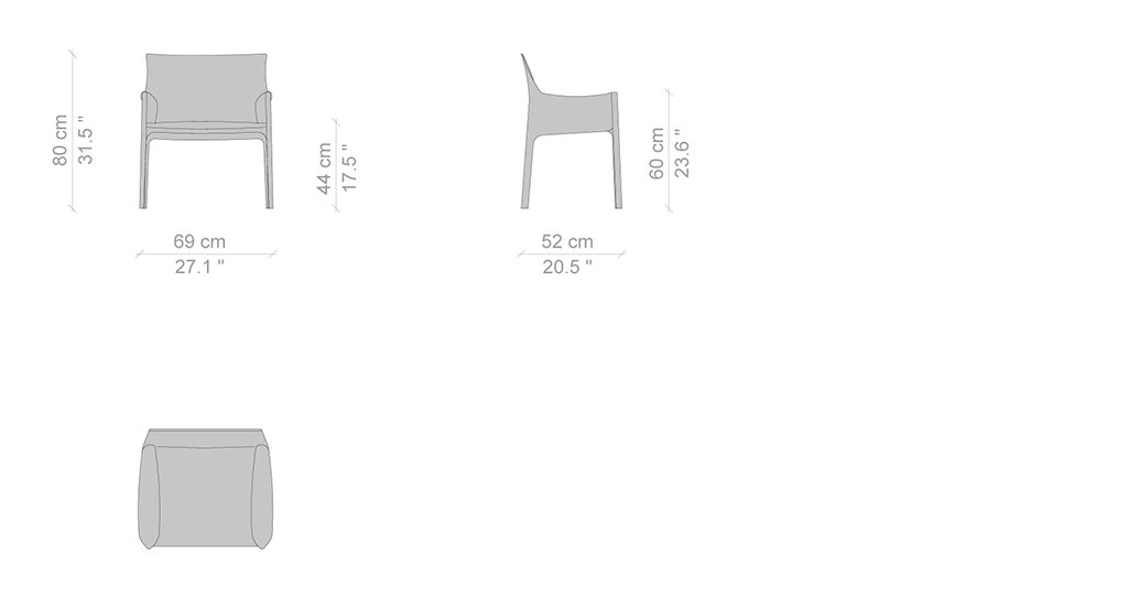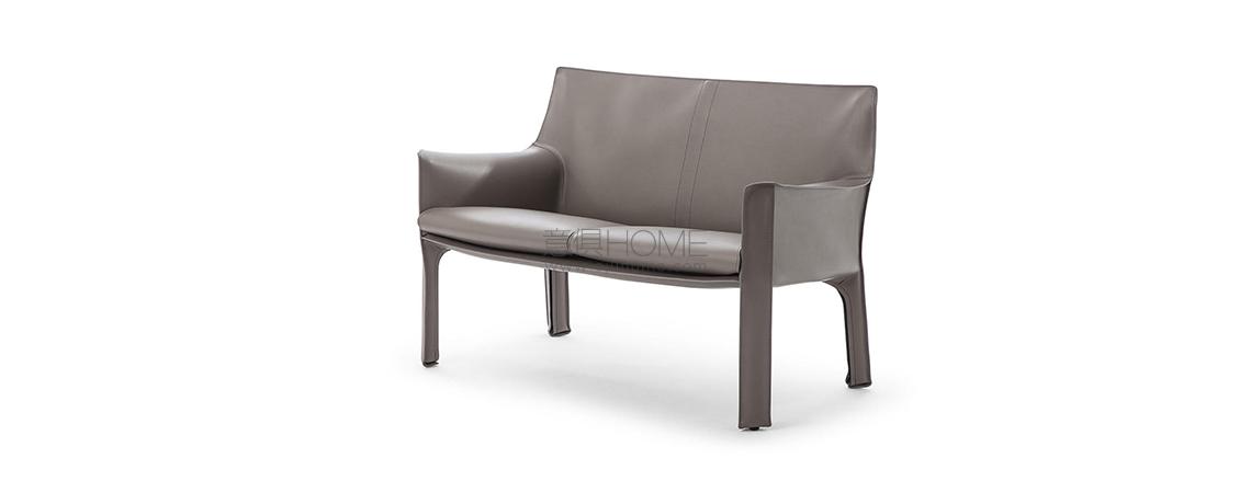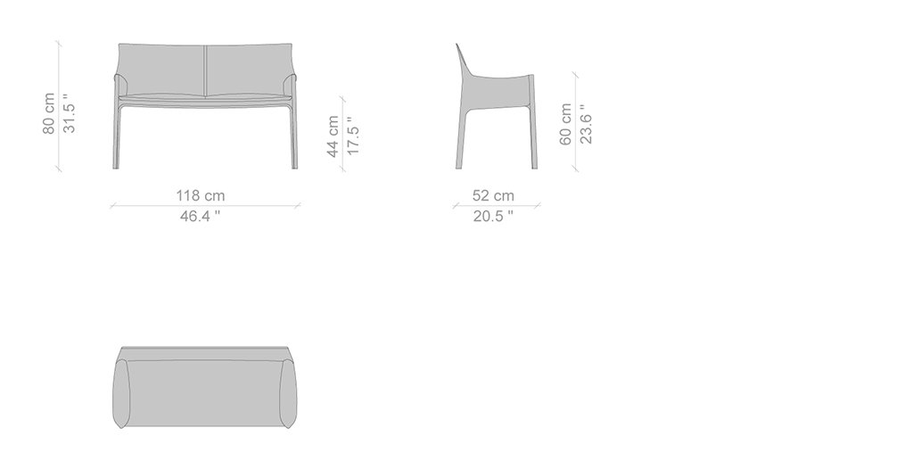 Poltrona e divanetto con struttura in acciaio verniciato. Schienale e cuscino sedile imbottiti in poliuretano espanso privo di CFC. Rivestimento in cuoio, calzato sulla struttura e chiuso con cerniere, in differenti colori.