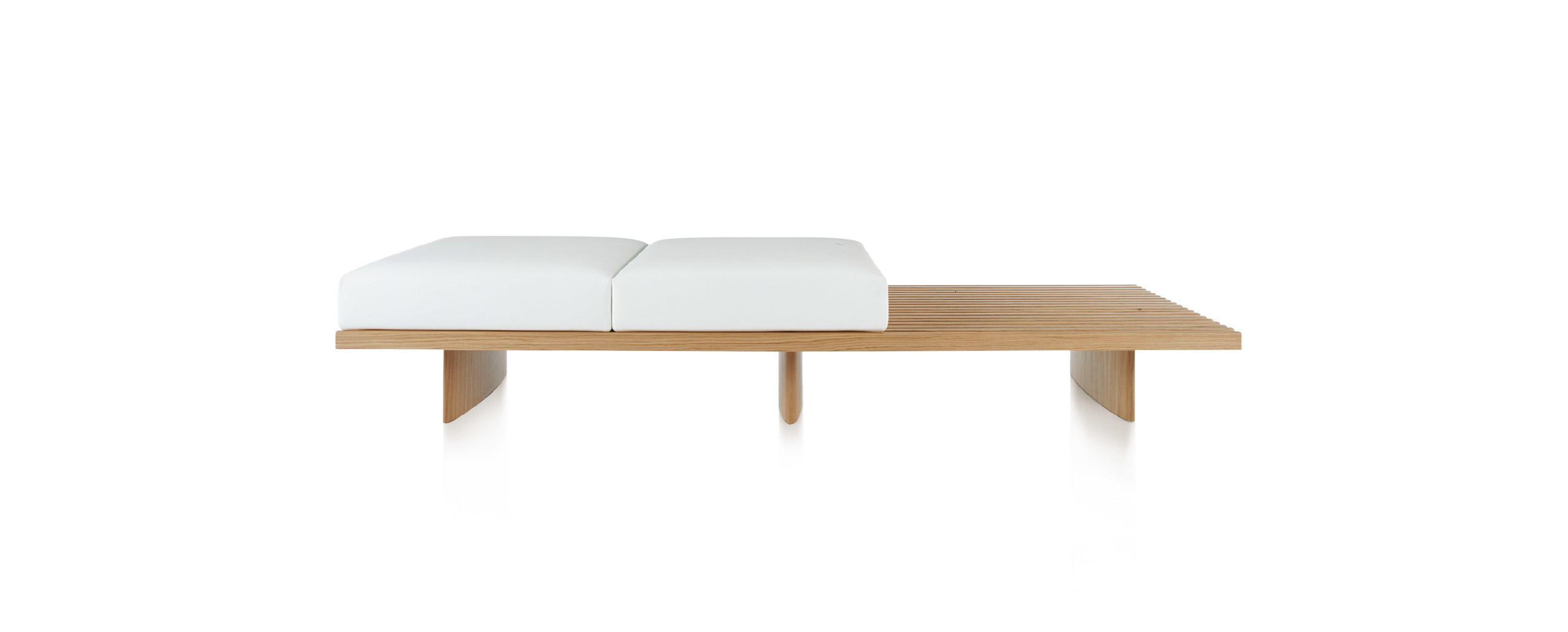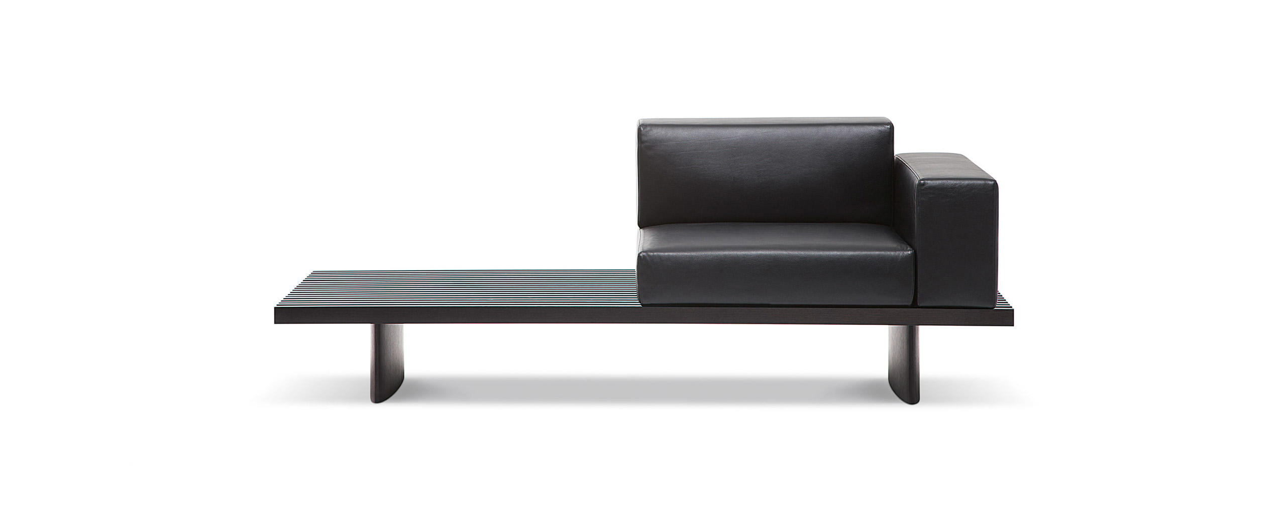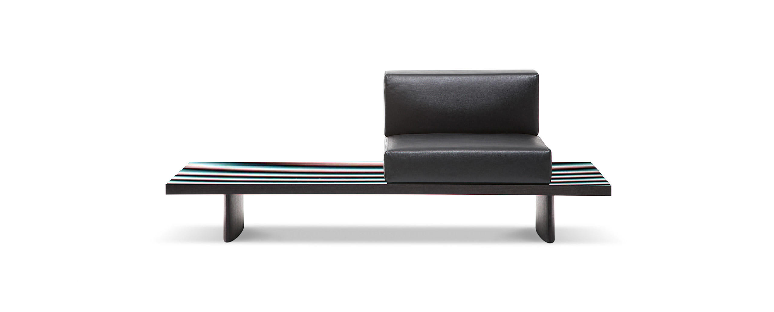 Un sistema modulare dai volumi semplici ed essenziali, ideato a Tokyo, nel 1953, da Charlotte Perriand, eppure ancora oggi straordinariamente attuale. La ricerca e l’impostazione del progetto si basarono sulla priorità del ruolo funzionale portando l’autrice ad una semplificazione formale di chiara ispirazione orientale. Il piano è costituito da una grata di 19 listelli ordinati in parallelo, declinato nella finitura in rovere naturale o tinto scuro, dotato di due o tre piedini e posto ad un’altezza misurata per un uso polivalente. I cuscini sono integrati in modo armonico mediante un semplice sistema di fissaggio che consente di posizionarli liberamente in qualsiasi punto, secondo il gusto e le esigenze. Ideale per gli ambienti giorno e per le zone relax, Refolo offre una molteplicità di configurazioni e modalità d’uso adatte al riposo e alla conversazione.