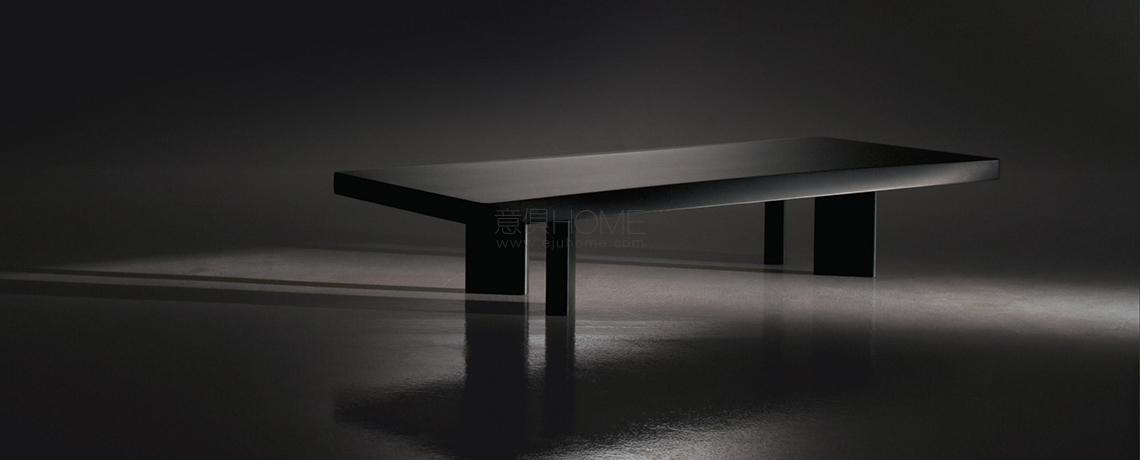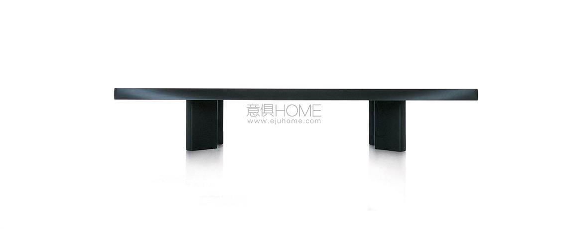Un tavolino in massello caratterizzato dall’estrema complessità tecnologica e dalla semplicità formale del design, ideato nel 1969 per l’Ambasciata del Giappone a Parigi. La sua sintesi ha origine dalla forte emozione provata da Charlotte Perriand alla vista casuale di un masso quasi ciclopico, il cui peso era sensibilmente attenuato dalla levigatura naturale dovuta all’erosione marina. Da qui derivano lo spessore del piano e lo sviluppo concavo del bordo, che trasmettono al modello una forte connotazione estetica e una sensazione di notevole leggerezza. Il contrasto tra l’impatto figurativo e la percezione razionale del peso reale definiscono l’unicità di questo mobile, che grazie alle elaborate tecniche di realizzazione resiste alle deformazioni del tempo cui sono abitualmente soggette le strutture in legno.