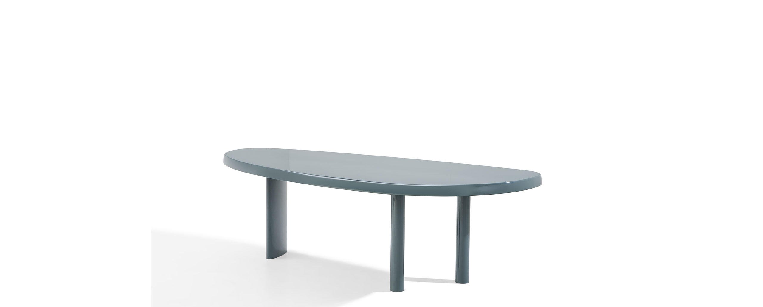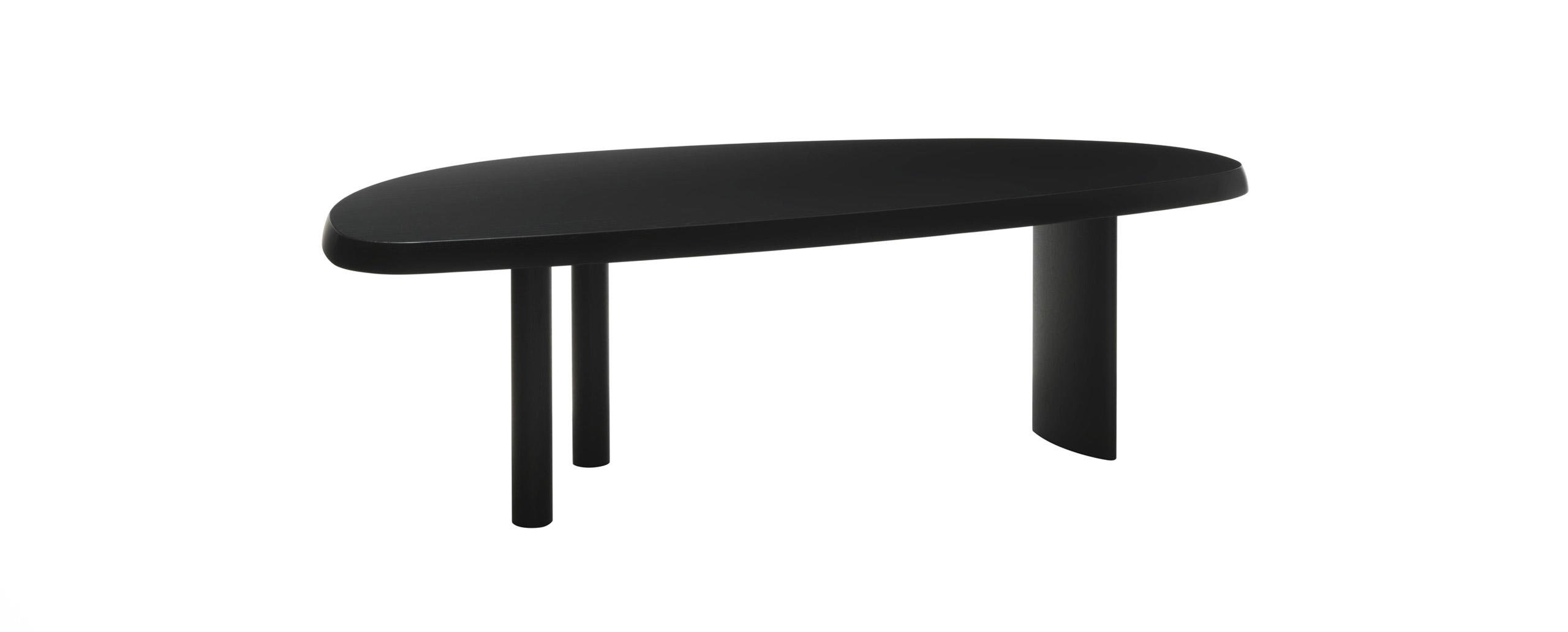 La Perriand inizia a disegnare la serie di tavoli en forme libre nel 1928, per il suo Atelier di Montparnasse, mettendoli in produzione con la Galerie Steph Simon alla fine degli anni ’50. Le forme prive di spigoli, arrotondate e asimmetriche, si adattano anche agli spazi ridotti consentendo di ospitare fino a 8 persone. La struttura presenta tre sostegni, di cui uno più grande e altri due più piccoli di forma cilindrica. Nel 2011 Cassina riedita il modello riducendo l’ingombro delle gambe per offrire una nuova dimensione che invita alla convivialità. Il tavolo in massello è disponibile anche in una versione interamente laccata lucida o opaca, nella palette di colori del progetto Moodboard Cassina. Il tavolo è composto da doghe con giunzioni laterali a vista che testimoniano la grande maestria dell’azienda nella lavorazione del legno, le cui eventuali mutazioni e irregolarità sono caratteristiche intrinseche che contribuiscono a evidenziare la naturale bellezza dell’essenza.