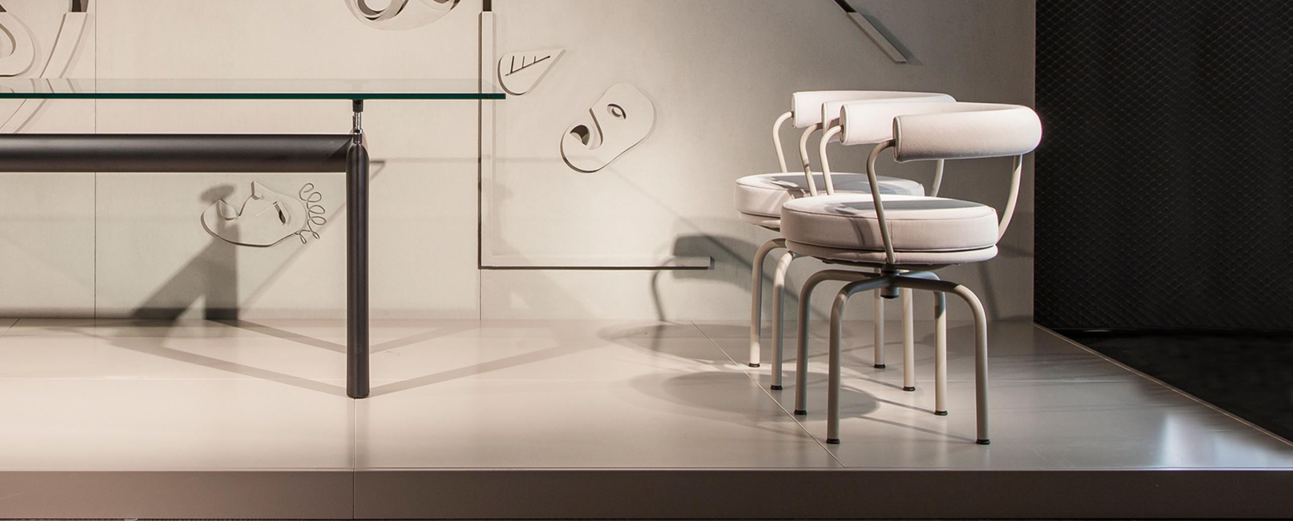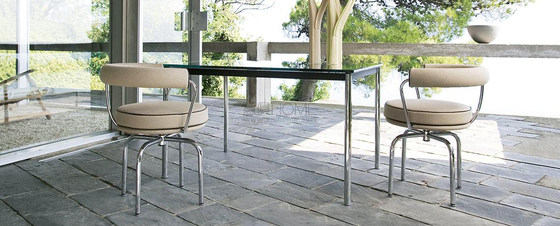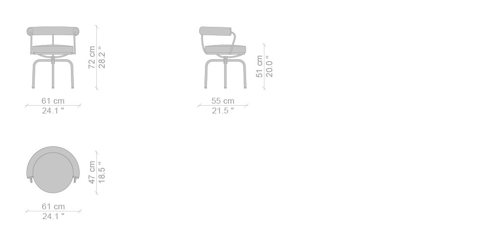 Un’icona dall’anima versatile e funzionale, disegnata nel 1927 da Charlotte Perriand per il suo appartamento parigino di Place Saint-Sulpice. Il progetto fu dapprima presentato al Salon des Artistes Décorateurs del 1928 e in seguito esposto al Salon d'Automne nel 1929, integrato alla collezione co-creata da Charlotte Perriand insieme a Le Corbusier e Pierre Jeanneret. La poltroncina girevole, disponibile nella versione con 4 o 5 gambe, è caratterizzata dallo schienale e dal cuscino-sedile imbottiti in poliuretano espanso e ovatta di poliestere, con rivestimento in pelle o in tessuto. La versione outdoor è realizzata in acciaio inossidabile con un particolare rivestimento in tessuto filato di poliestere che riproduce l’estetica dei modelli da interno. A partire dal 2016 la poltroncina è stata oggetto di un importante aggiornamento strutturale che ha portato all’ottenimento delle certificazioni Catas.