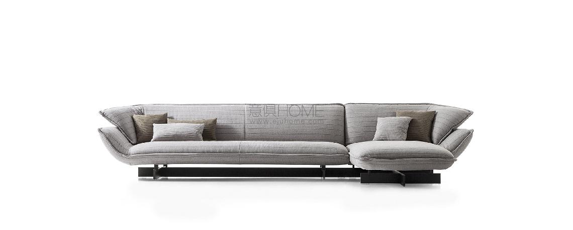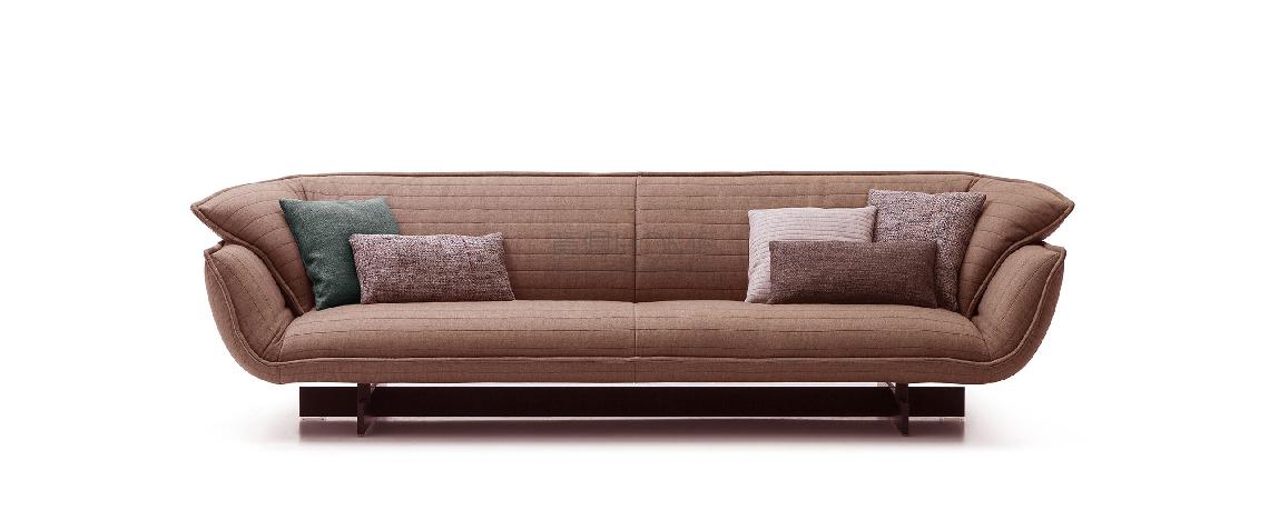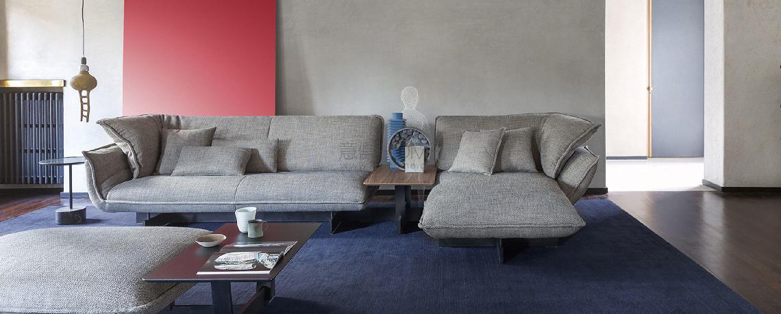 Un innovativo sistema di sedute imbottite, che grazie all’appoggio della trave geometrica consente di abbinare diversi elementi e comporre soluzioni personalizzate all’insegna dello stile, del relax e della funzionalità. La sovrapposizione tra lo schienale alto, il meccanismo dello schienale e il bracciolo regolabile crea l’effetto di un abbraccio confortevole e avvolgente, ulteriormente accentuato dalle cuscinature soffici e accoglienti. La maestria artigianale di Cassina si rivela nel dettaglio della cucitura sinuosa, delineata da una pizzicatura perimetrale che impreziosisce l’estetica elegante e raffinata del design. La fodera in piuma riveste la struttura in poliuretano amplificando la sensazione di comfort e la morbidezza visiva delle forme. Il sistema include tre divani e diversi elementi componibili tra cui le sedute, i tavolini e il pouf.