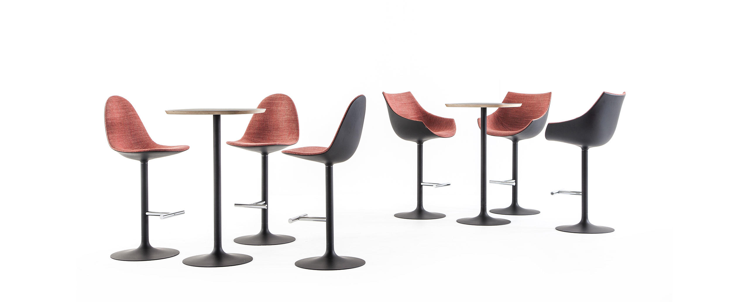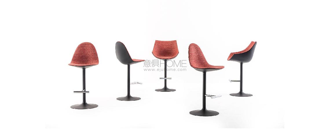 La gamma Caprice/Passion si espande per accogliere due nuovi sgabelli caratterizzati da una base a stelo di alluminio e da sedute che riproducono le rispettive fisionomie della sedia Caprice e della poltroncina Passion. La seduta degli sgabelli ruota a 360° ed è sempre posizionata in direzione del poggiapiedi cromato grazie al meccanismo automatico della base. La proposta, sviluppata su due altezze, arricchisce l’estetica iconica e intramontabile di Cassina puntando a rafforzare il suo posizionamento nel segmento business e nell’arredo degli ambienti che associano vita e lavoro.