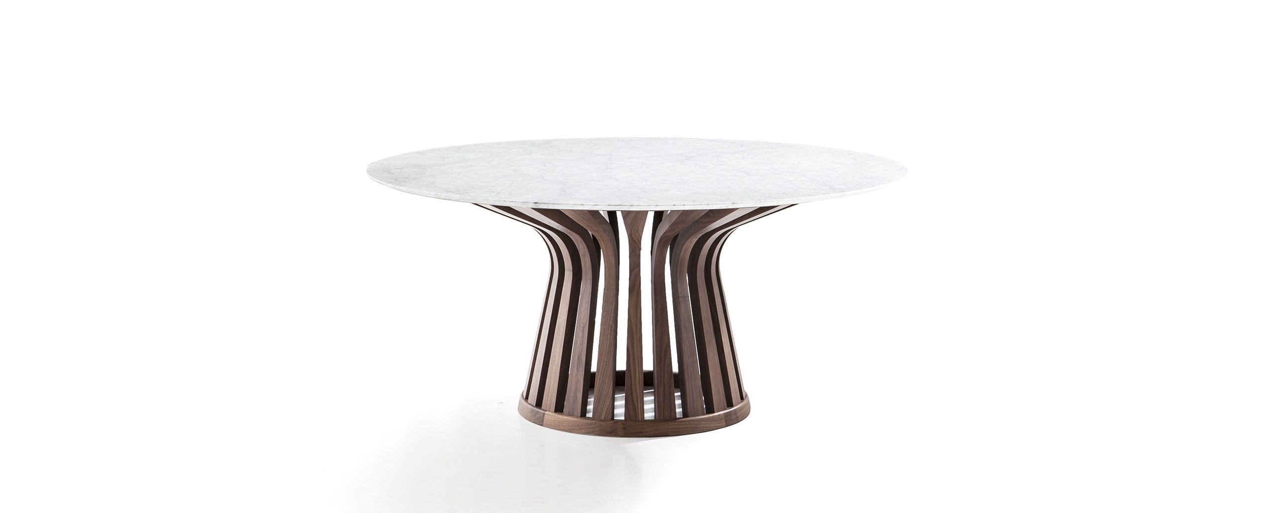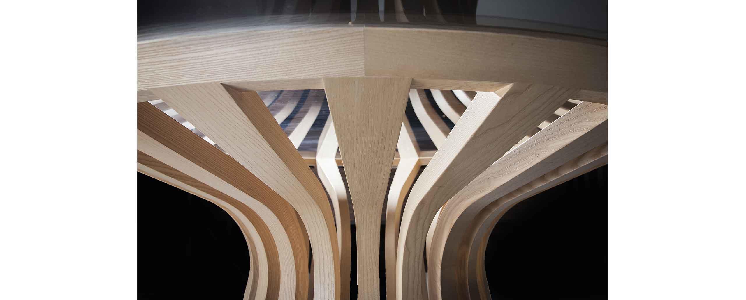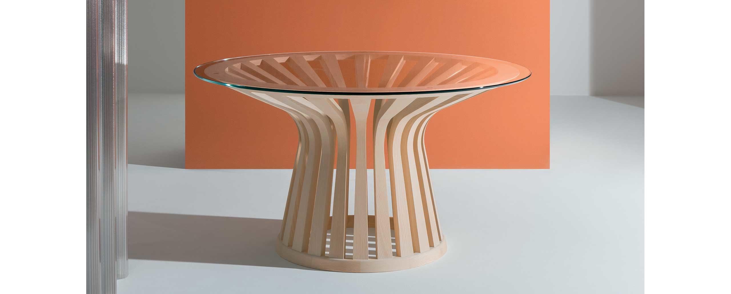 Lebeau Wood rappresenta l’evoluzione dell’iconico e innovativo tavolo Lebeau, di cui conserva le misure e le sagome originali rivoluzionando la soluzione materica a favore del legno massello.Il suo meticoloso processo costruttivo richiede circa 6 ore di lavoro e nasce dall’incontro tra la manualità degli artigiani di Meda, che gestiscono ogni fase della realizzazione, e l’ausilio dei più moderni e sofisticati macchinari a controllo numerico. La base si compone di 22 doghe, lavorate meccanicamente partendo dal massello curvato di frassino, e in seguito congiunte a due corone, anch’esse in massello di frassino, per formare la base e il sostegno dei piani. Il risultato è un tavolo di grande pregio e rinnovata personalità, simbolo dello straordinario estro stilistico e produttivo di Cassina.