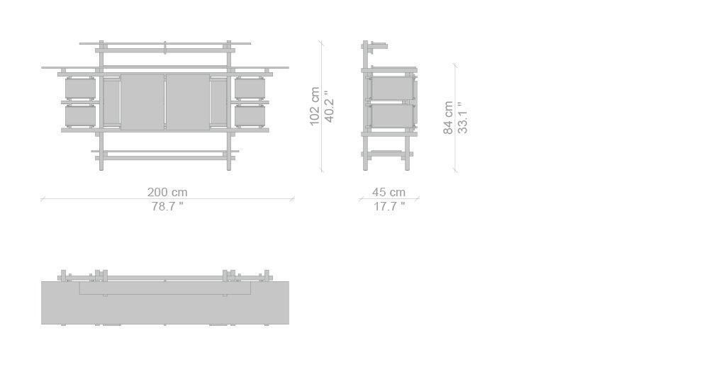 Rappresenta, con la Red and Blue, l’essenza della nuova spazialità del neoplasticismo. Riferimento fondamentale per l’affermazione del Moderno, questa credenza, progettata nel 1919, fu inizialmente utilizzata nell’alloggio modello progettato da J.P Oud per Spargen, Rotterdam e in vari progetti di interni, tra i quali quello per P.J Elling. Il modello originale andò distrutto in un incendio e fu ricostruito sotto la supervisione dell’autore nel 1951, per una mostra presso lo Stedelijk Museum ad Amsterdam. Oggi, per la prima volta, Cassina mette in produzione questo contenitore presso la sua storica falegnameria a Meda, in collaborazione con gli eredi. La purezza delle linee della struttura, dà origine a un reticolo fondato sul nodo strutturale, sul quale si innestano piani, cassetti e Contenitori e Librerie. Il modello risente dell’influenze di F.L.Wright e dall’arte anglo-giapponese di E.W.Godwin, soprattutto per l’orizzontalità accentuata dei piani, controbilanciata dai sostegni verticali a formare una gabbia a cui sono sospesi gli elementi di contenimento. La griglia di sostegno, virtualmente continua, ha le sezioni dei listelli a contrasto per esaltarne la forza dinamica verso l’esterno.
