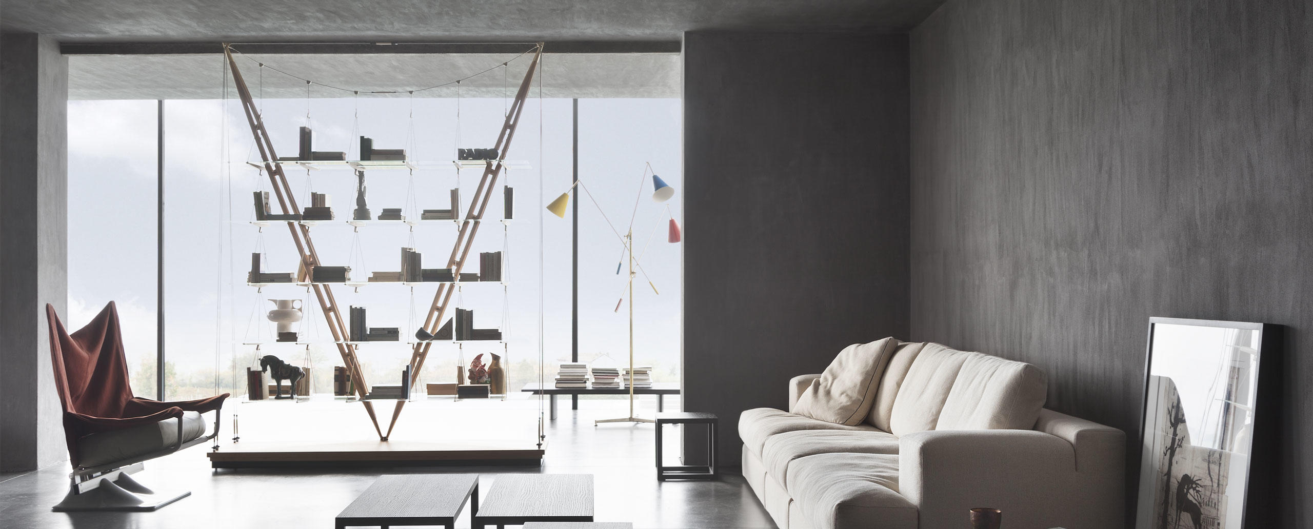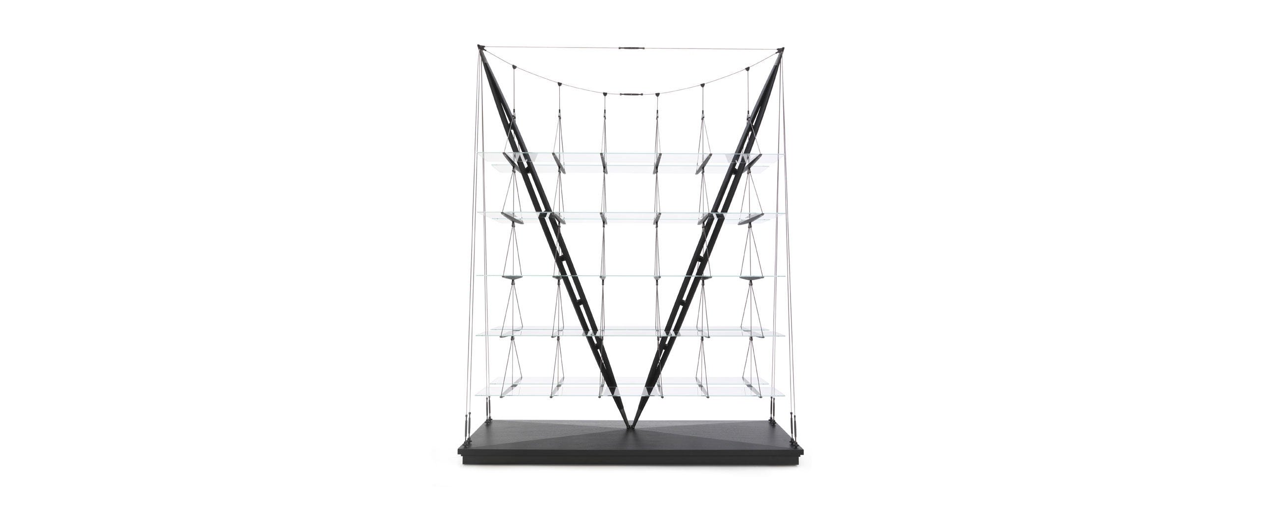 Una libreria che sfida le leggi della statica e oltrepassa audacemente le convenzioni dell’equilibrio. Un vero e proprio manifesto della capacità progettuale e costruttiva di Cassina, che dopo un lungo periodo di studio e rielaborazione, e grazie all’intervento delle tecnologie più avanzate, ha rieditato il modello realizzato nel 1940 da Franco Albini come unico esemplare per la sua dimora milanese. Il rispetto dell’anima autentica del progetto, con la sua forte carica sperimentale e il suo design sorprendentemente lineare, preserva la poetica di sottrazione alla base della struttura, creando intervalli atmosferici di aria e luce che sembrano far galleggiare i libri e gli oggetti nello spazio. Cassina restituisce così alla cultura del design uno dei suoi pezzi più iconici, elevato allo status di opera d’arte che rivive nella contemporaneità preservando la sua magia originaria.