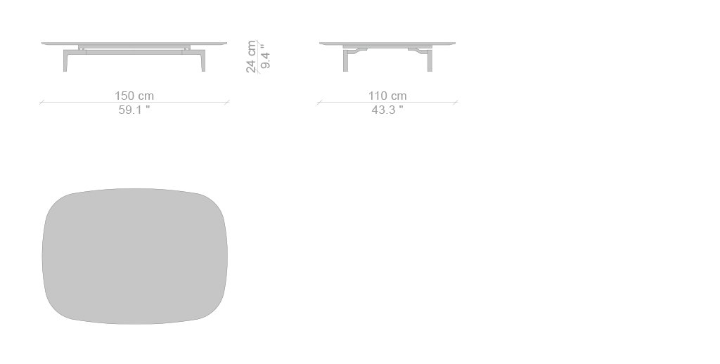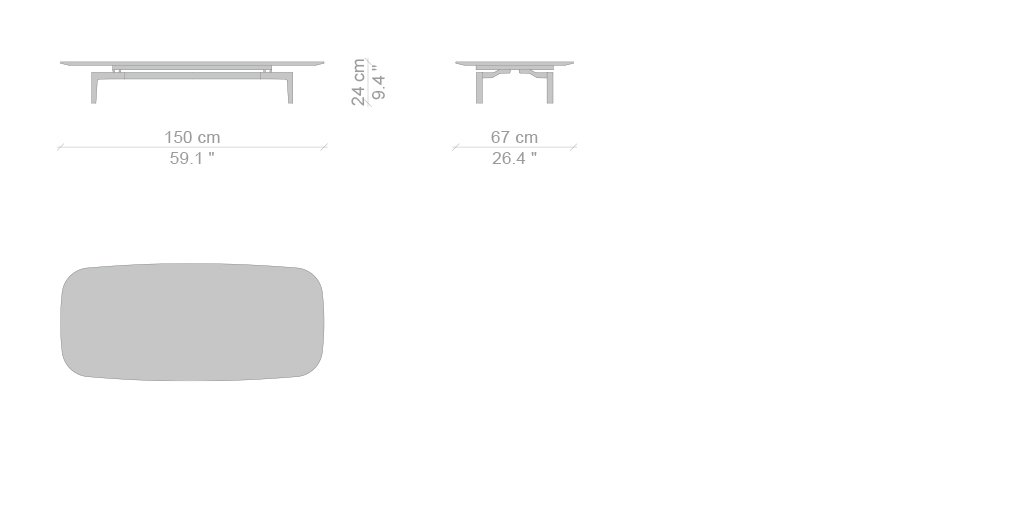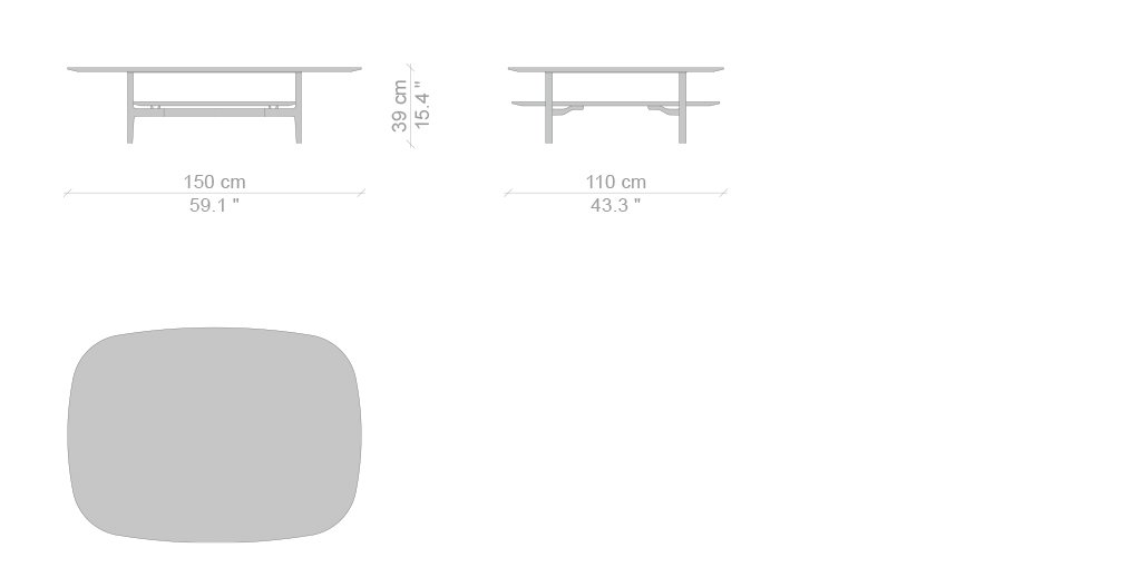 Una collezione di tavolini versatile e progettata in due dimensioni rettangolari con bordi arrotondati, ciascuna disponibile con un piano semplice o con due piani sovrapposti che formano un ripiano inferiore funzionale al posizionamento di riviste o piccoli oggetti.