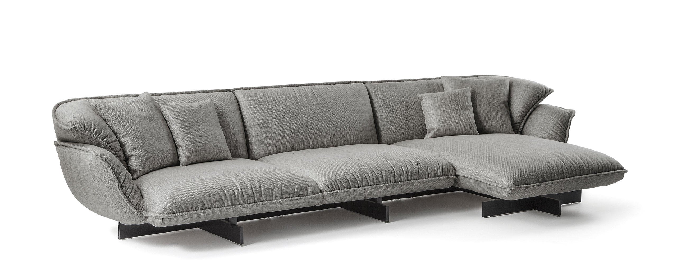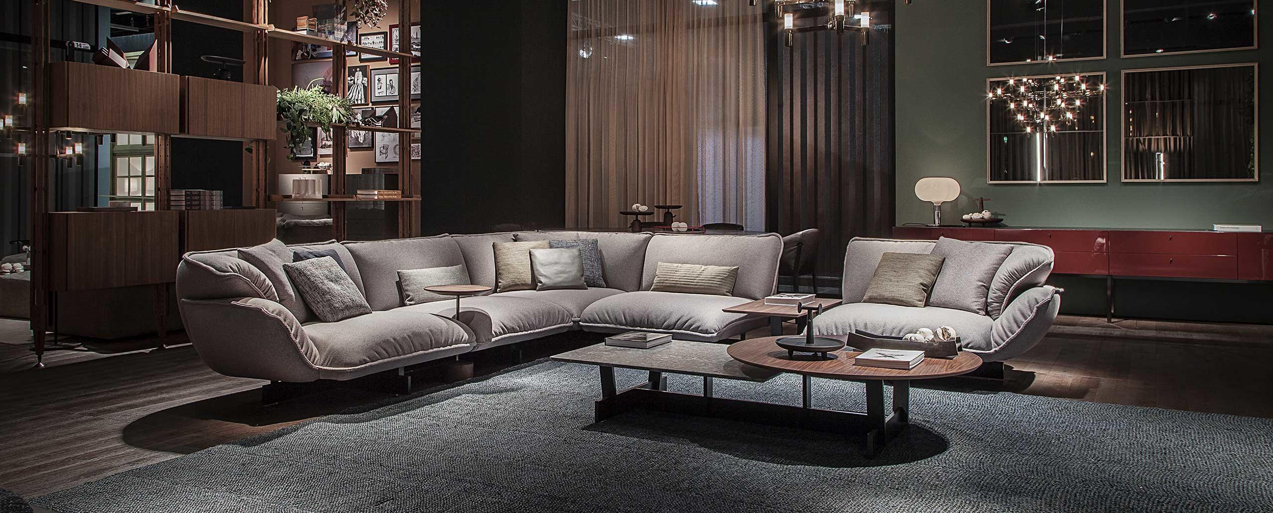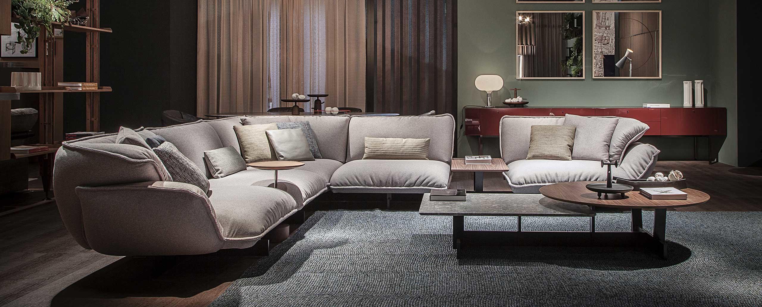 Il Beam Sofa System accoglie una nuova versione dalle dimensioni maggiorate e dalla forte presenza scenica, definita da quattro elementi imbottiti componibili, con terminale sinistro, destro, intermedio o angolare. L’uso sapiente dell’ovatta e del poliuretano espanso consente di incrementare la profondità e lo spessore dell’imbottitura garantendo una sensazione extra-comfort, mentre la trave geometrica di base evolve il concetto di modularità attraverso le innumerevoli configurazioni suggerite dall’articolazione semplice. La facilità di composizione si abbina alla cura dei dettagli per dare risalto alla raffinatezza del design, che viene impreziosito con una cucitura perimetrale dall’effetto drappeggiato di notevole eleganza visiva. Il sistema è completato da una chaise longue indipendente e da tavolini indipendenti o aggregabili agli elementi imbottiti.