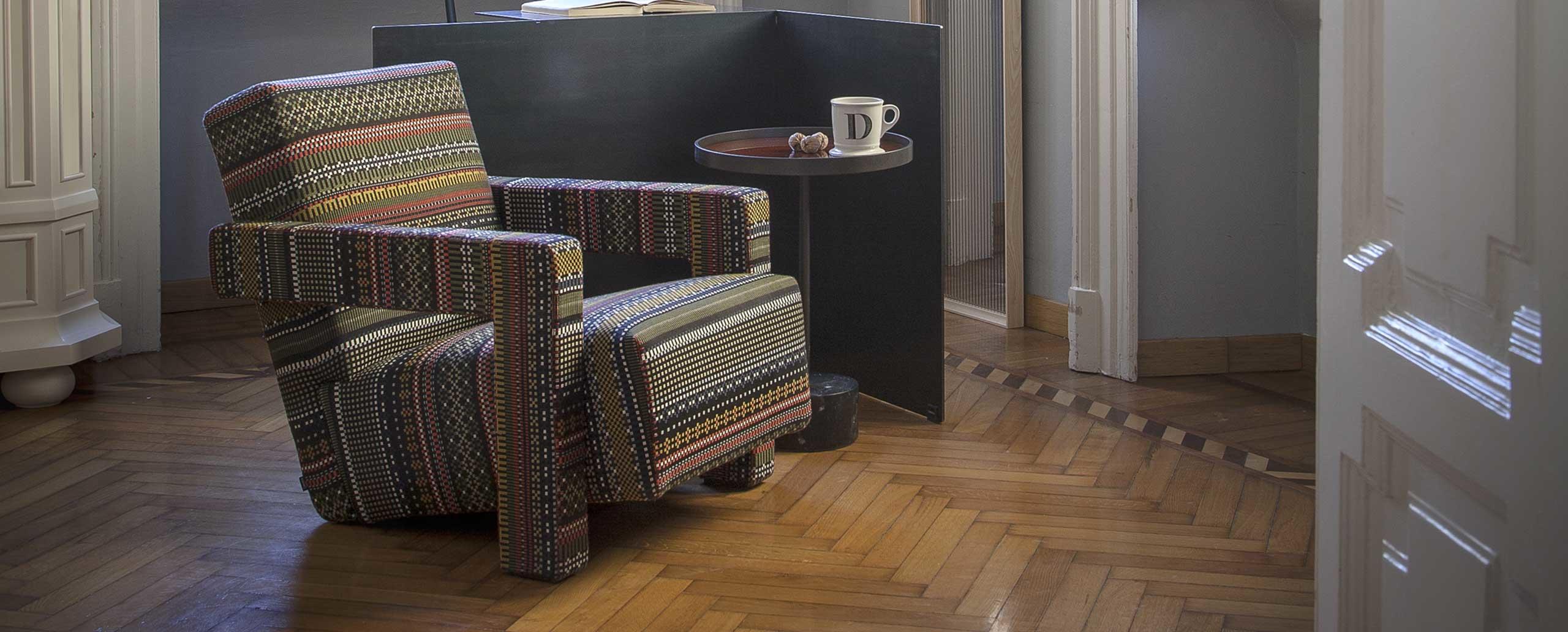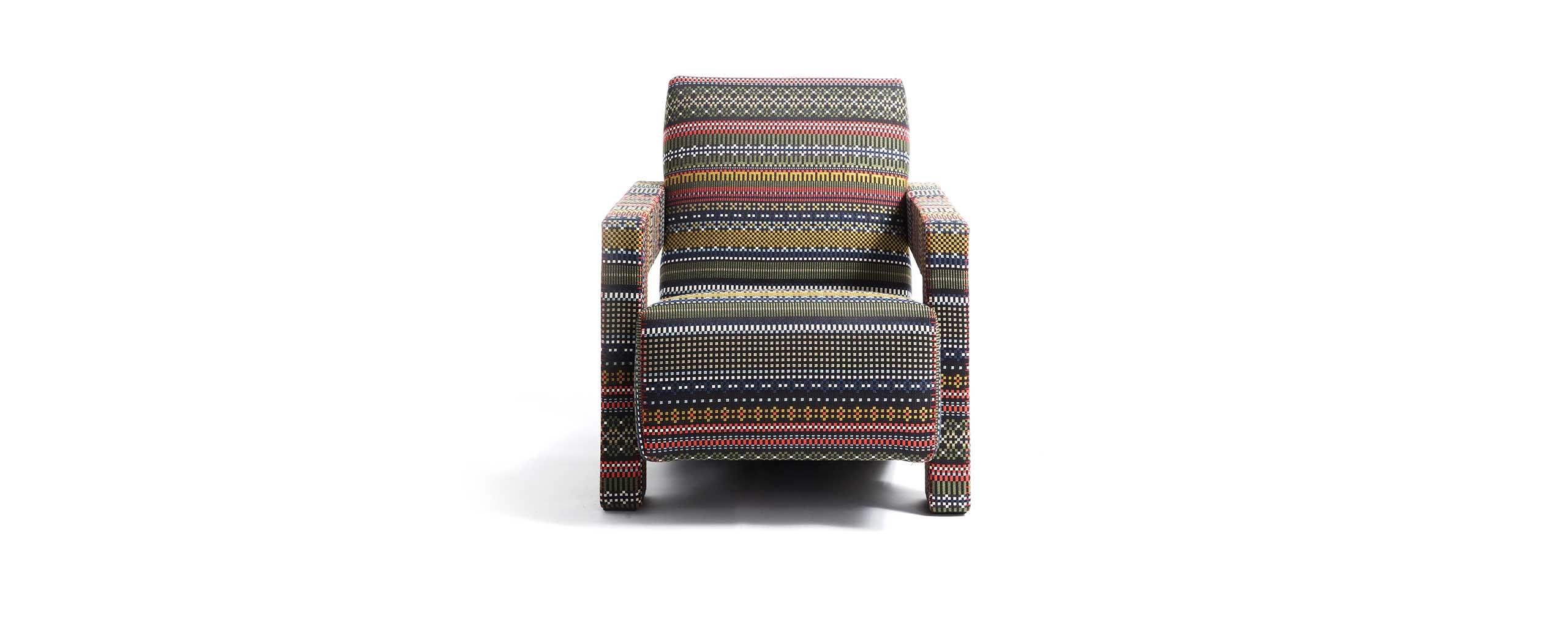Interpretazione contemporanea dell'icona del 1935 con rivestimento speciale disegnato dallo stilista Paul Smith per Maharam di Kvadrat.