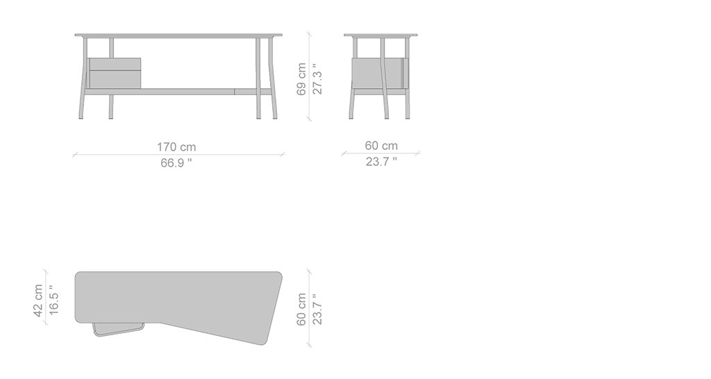 Lo scrittoio Sled, disegnato da Rodolfo Dordoni, ha una personalità versatile, che lo ren-de adatto sia alla camera da letto sia alla zona living della casa, in abbinamento ad altri arredi della collezione Cassina. La struttura è in rovere tinto nero con piano sagomato sinistro o destro e cassettiera a due cassetti, dotati di vassoio interno, laccata nero opaco con top in rovere tinto nero, posizionabile a sinistra o a destra.
