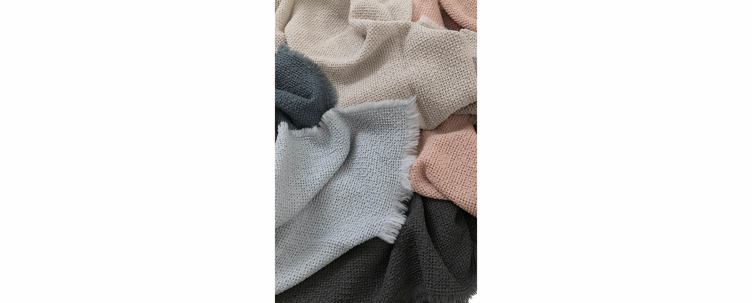 è in pura lana lavorata a nido d’ape: un’armatura assolutamente inedita in rapporto al materiale che conferisce a questa coperta un aspetto tridimensionale, materico, asciutto ed elastico al tempo stesso. Grazie alla lavorazione a nido d’ape Nid è calda, ma leggera, quindi adatta anche per i periodi meno freddi. Anche per questa coperta il colore è un elemento fondamentale. Le tonalità della palette continuativa e stagionale, grazie alla "tintura in capo", conferiscono al tessuto la migliore resa volumetrica e al prodotto le qualità del pezzo unico.