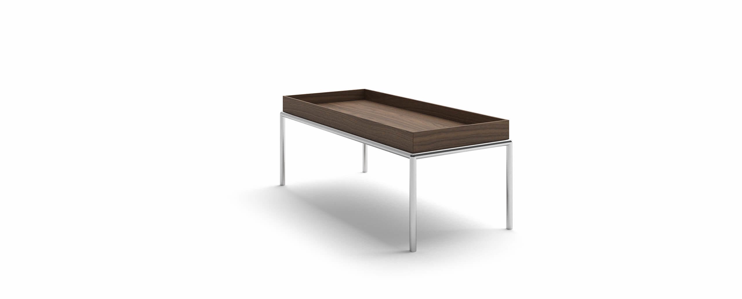 Il pouf/tavolino che completa il sistema Mex-Hi è un elemento versatile, adatto a molteplici spazi e configurazioni grazie alla sua modularità. Può combinare una seduta sottile con un piano in marmo o in legno, oppure un piano in marmo o in legno con un vassoio in legno massello o, ancora, essere un funzionale tavolino con piano in marmo o in legno massello. La struttura è in tubolare di acciaio.