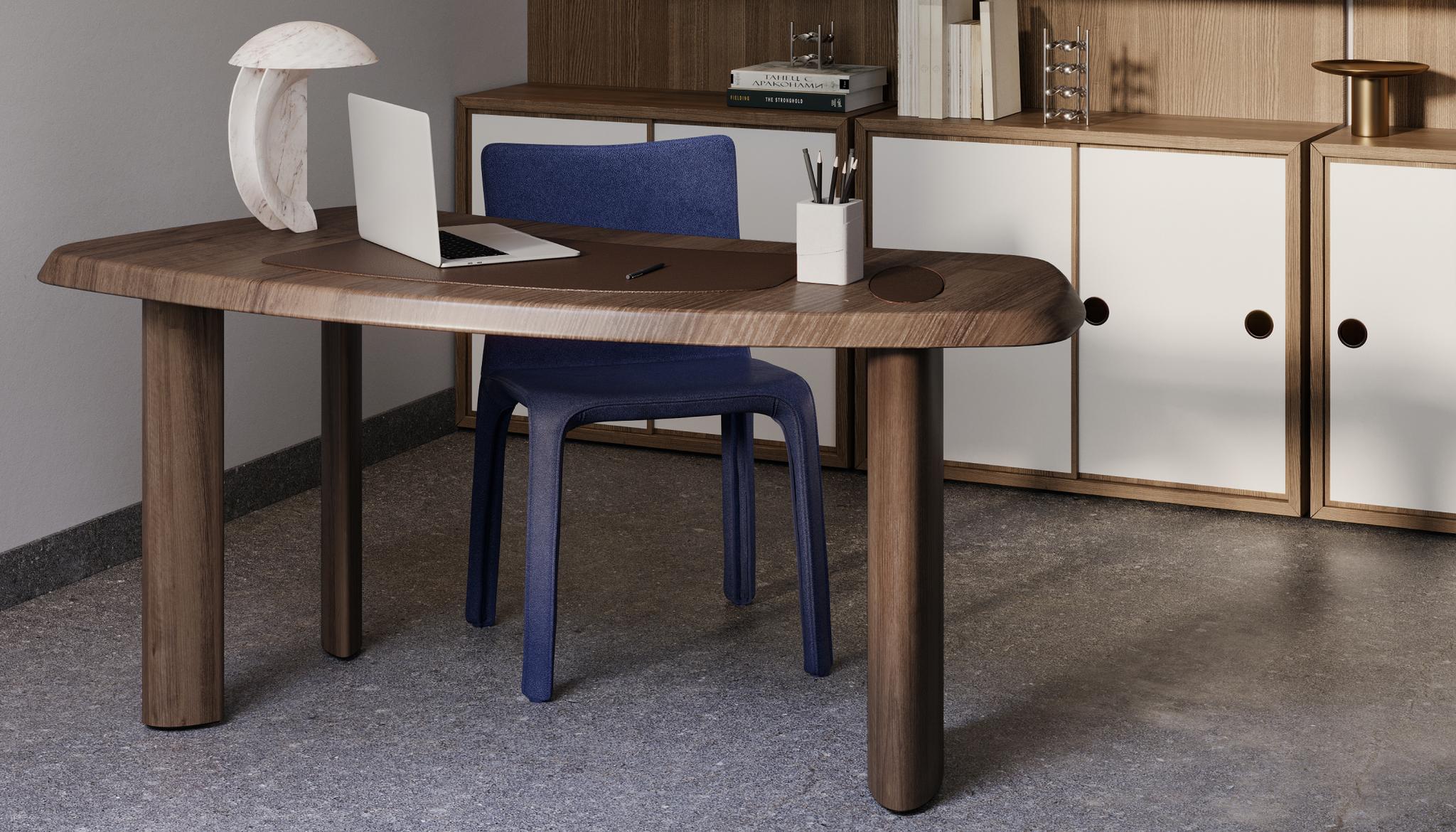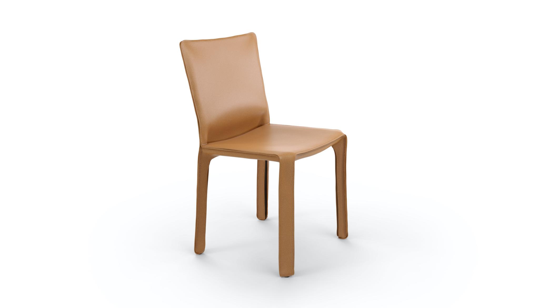 Cab is the first saddle-hide chair with a free-standing structure, inspired by the relationship between the skeleton and the skin. The individual pieces of saddle-hide are stitched together and the upholstery is then molded to a steel skeleton and closed with zippers, like a custom-tailored suit. The Cab version with armrests and stool completes the collection.