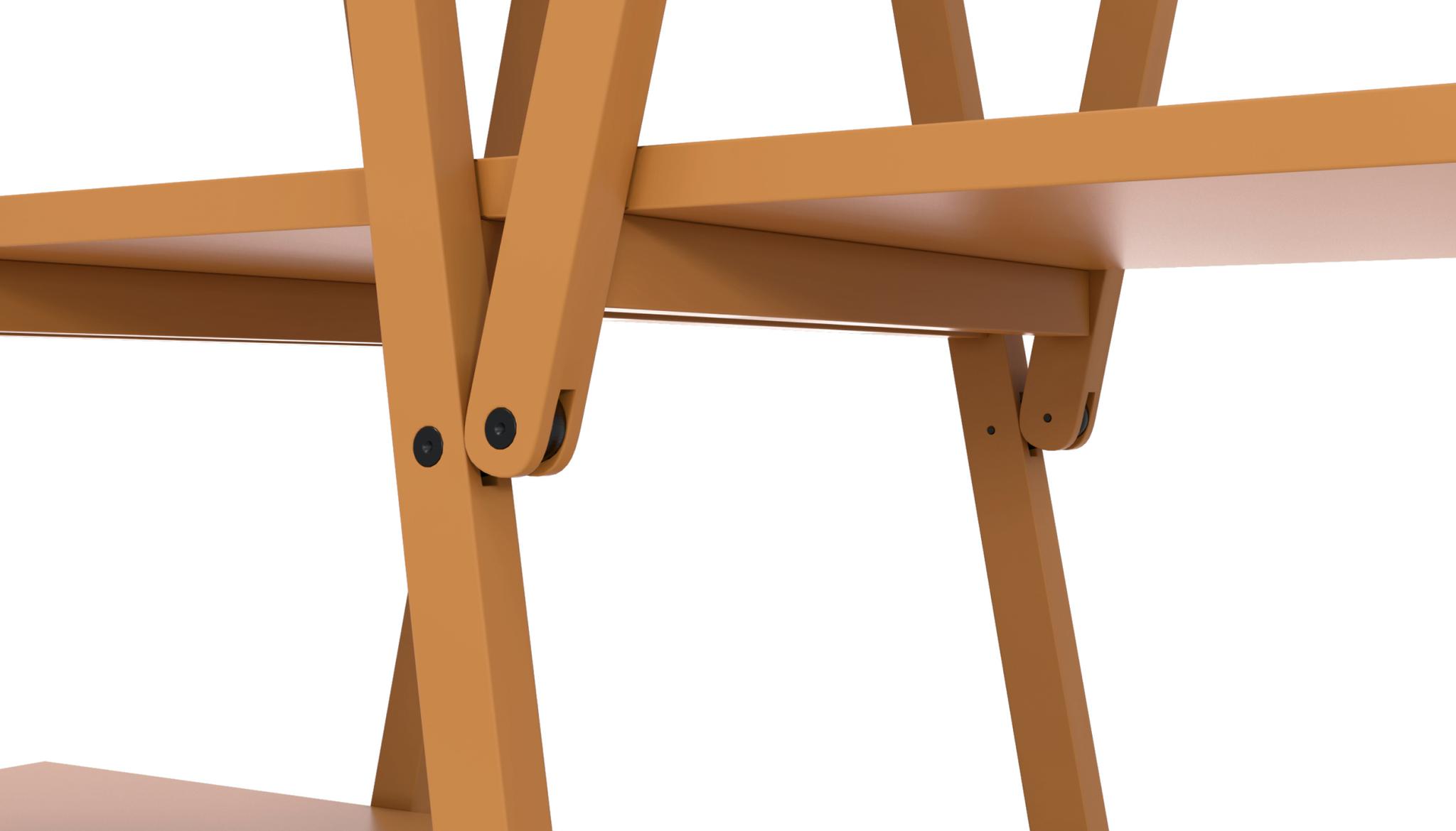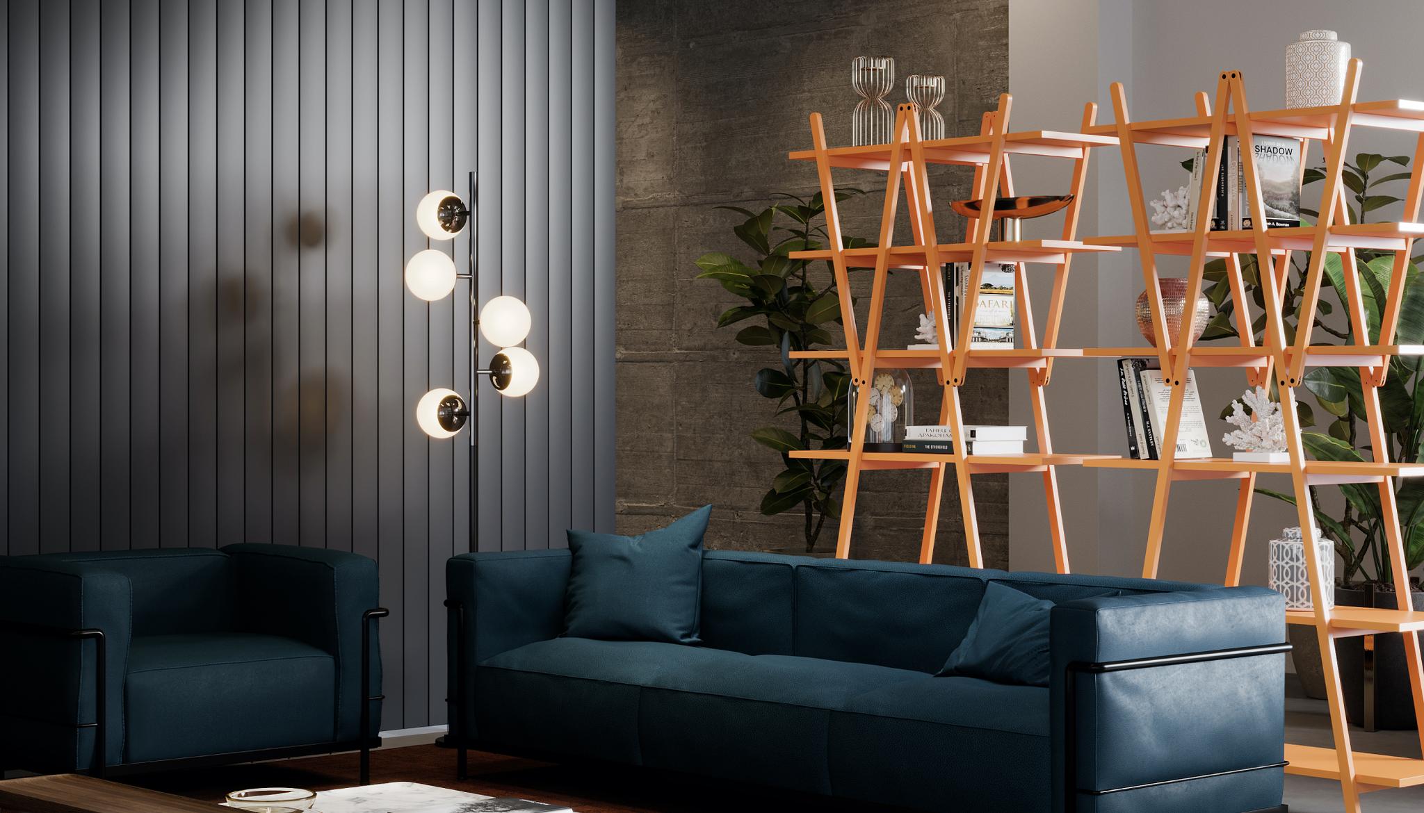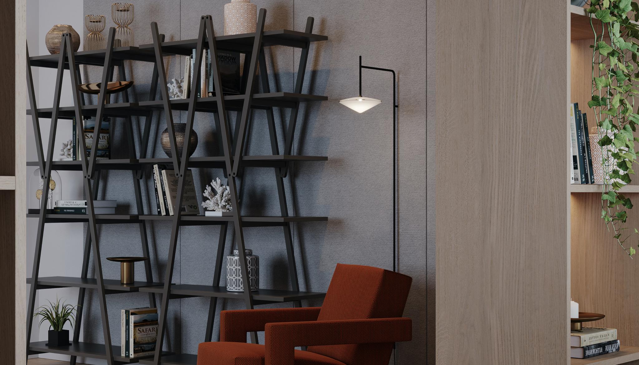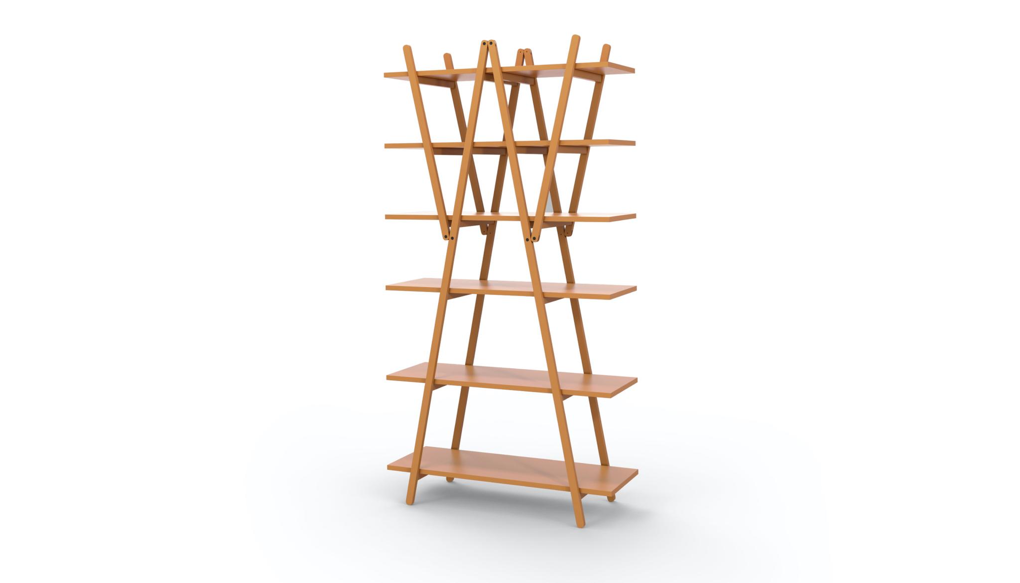 A design bookcase with sleek, simple lines, crafted by Vico Magistretti after lengthy analysis and interpretation of the elements that make up the classic bookcase with sides and shelves. An icon of modern design it is also an authentic structural invention in which the diagonal braces become loadbearing elements that support the shelves, allowing the side pieces to be eliminated entirely. it comes in goose-beak orange or grey, custom colors for the Cassina PRO collection.