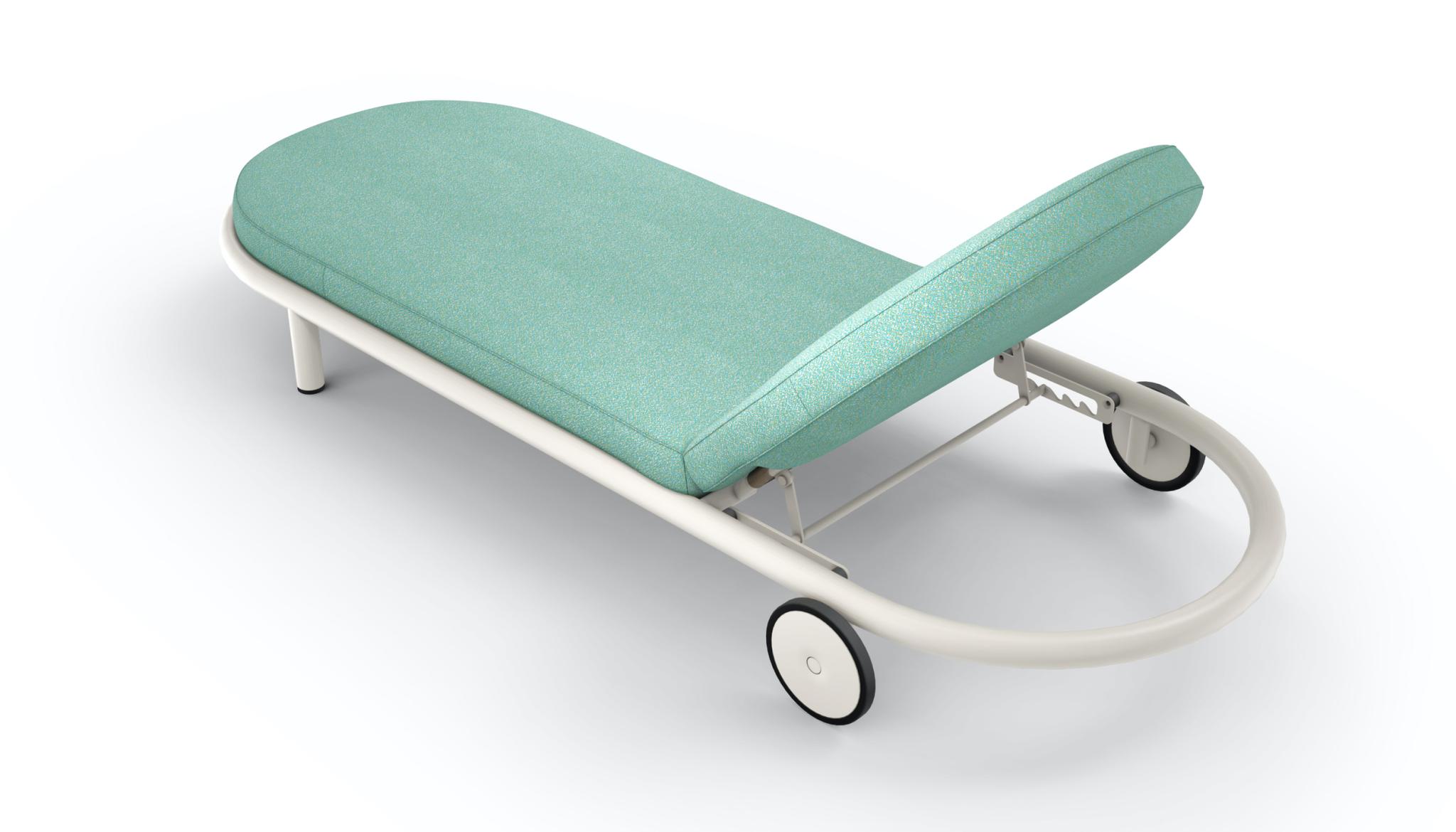 Patricia Urquiola designs a new sunbed that completes the Trampoline family of outdoor furnishings, a sophisticated, versatile product and an open invitation to comfort and wellbeing outdoors.